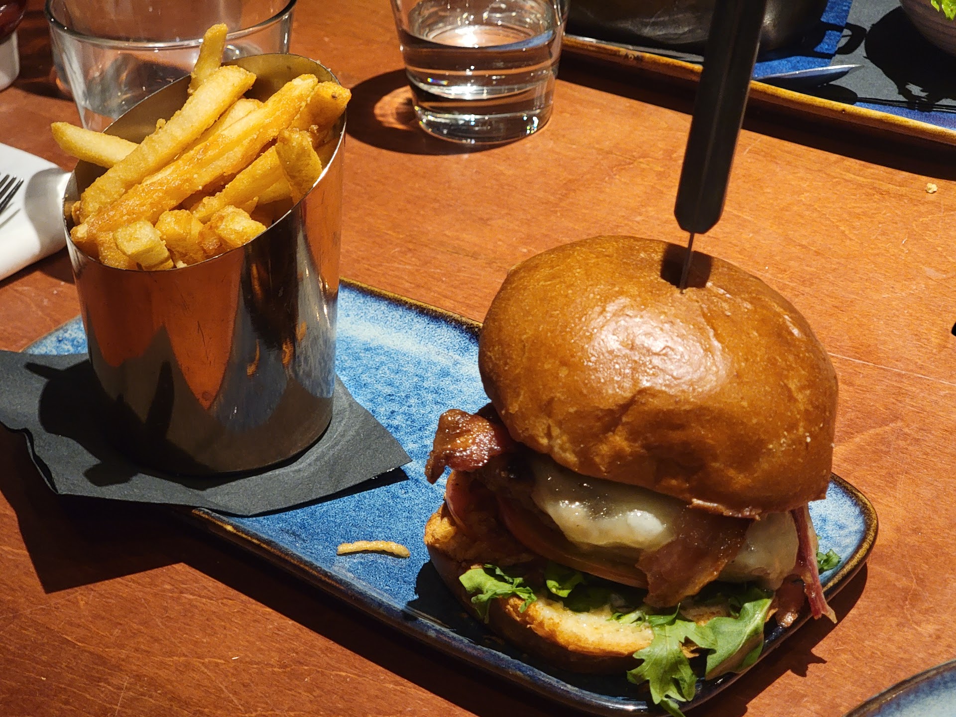 I was seated at a table for two and I was given water within 30 seconds. 21 minutes goes by before anyone asks me if I would like to order a drink, which I did, which was after I had to go and find a menu. 47 minutes then elapsed after initially being seated and finally my drink appeared. During this exciting time of playing chess on my phone, staring at the ceiling and getting older I also finally got to put a food order in. Progress.