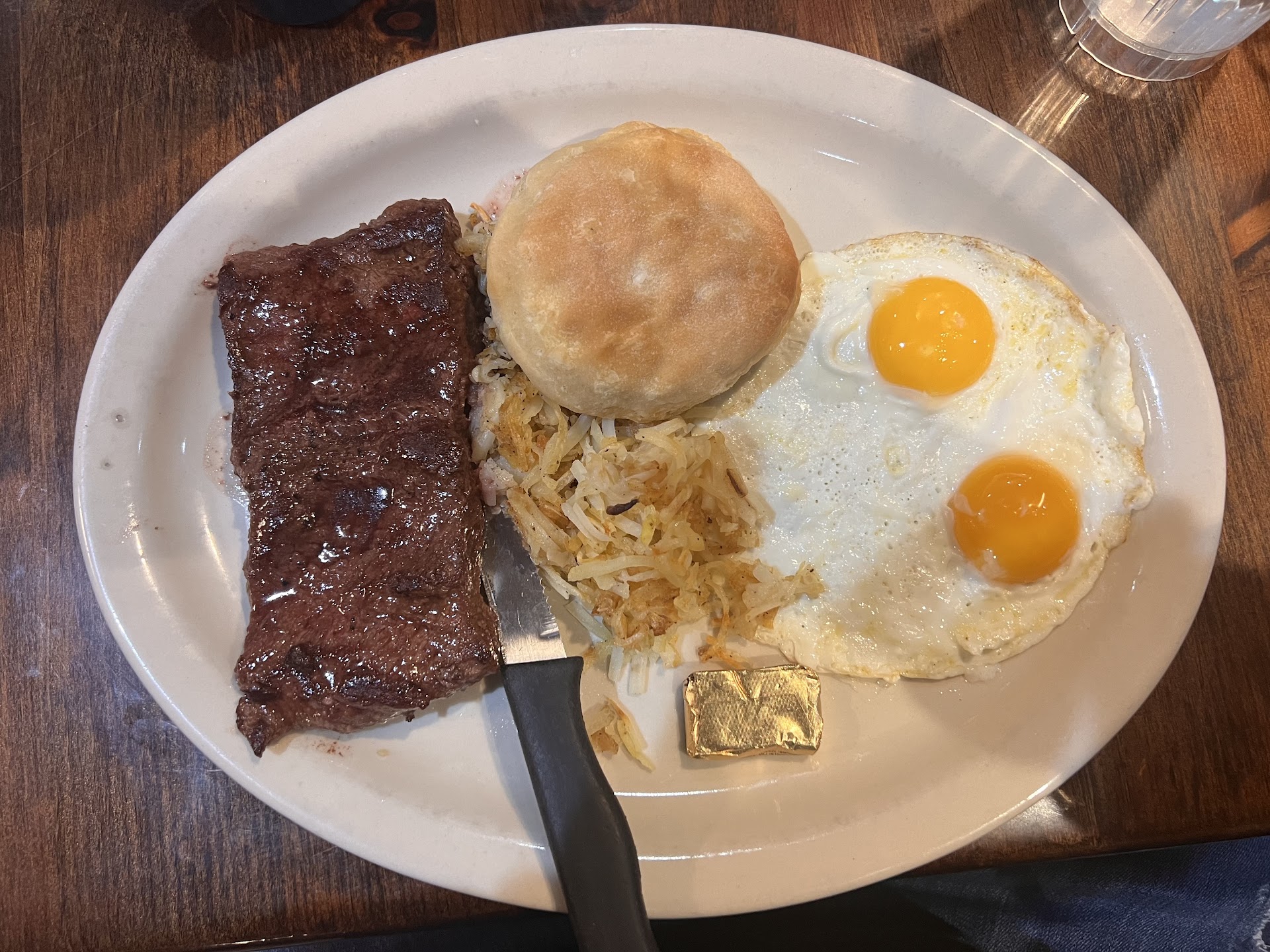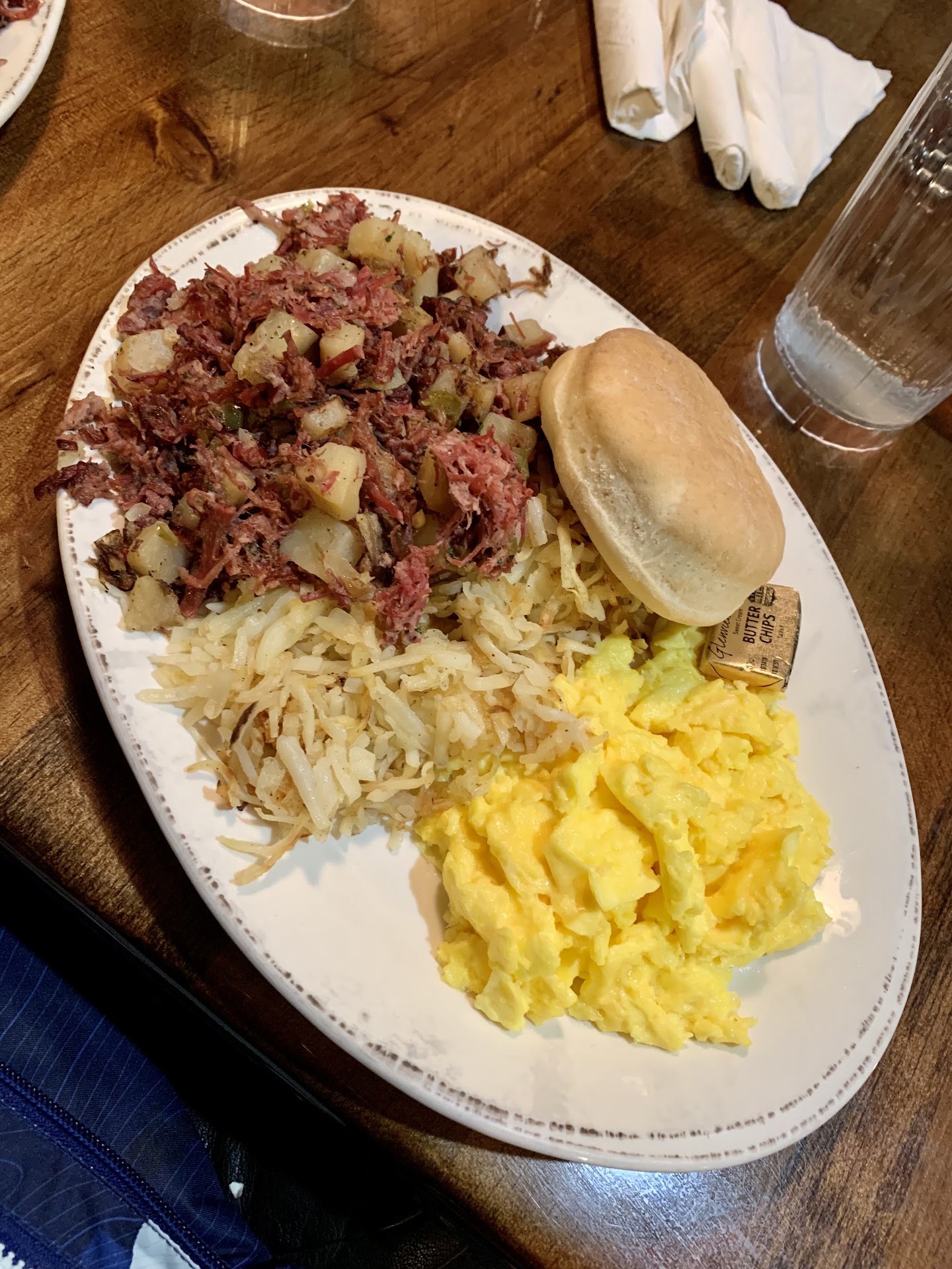 Read moreI don't write reviews often, but this place really impressed me, so here I am. We took a quick weekend getaway for one night to Breckenridge. Unfortunately, we didn't get out of the hotel early enough to catch breakfast at most places, but Columbine Cafe serves breakfast all day, so we ended up here. First, their list of yummy coffee drinks was impressive, so we indulged in a treat. Very tasty! For breakfast, my boyfriend had the breakfast burrito and I had a combo type plate of eggs, bacon, hashbrowns, and pancakes. We both requested crispy potatoes and I asked for crispy bacon. Typically, that type of request gets glossed over and you kind of get whatever they feel like giving you. We were both very pleasantly surprised when the potatoes were a nice crispy golden brown without being burned, and my bacon was also the perfect level of crispiness. It's such a small thing, but it was just a perfect breakfast and made us so happy. The burrito was also filled with the good stuff, instead of a bunch of filler potatoes, and the pork green chili was amazing. I don't usually rave about breakfast, but this place really...