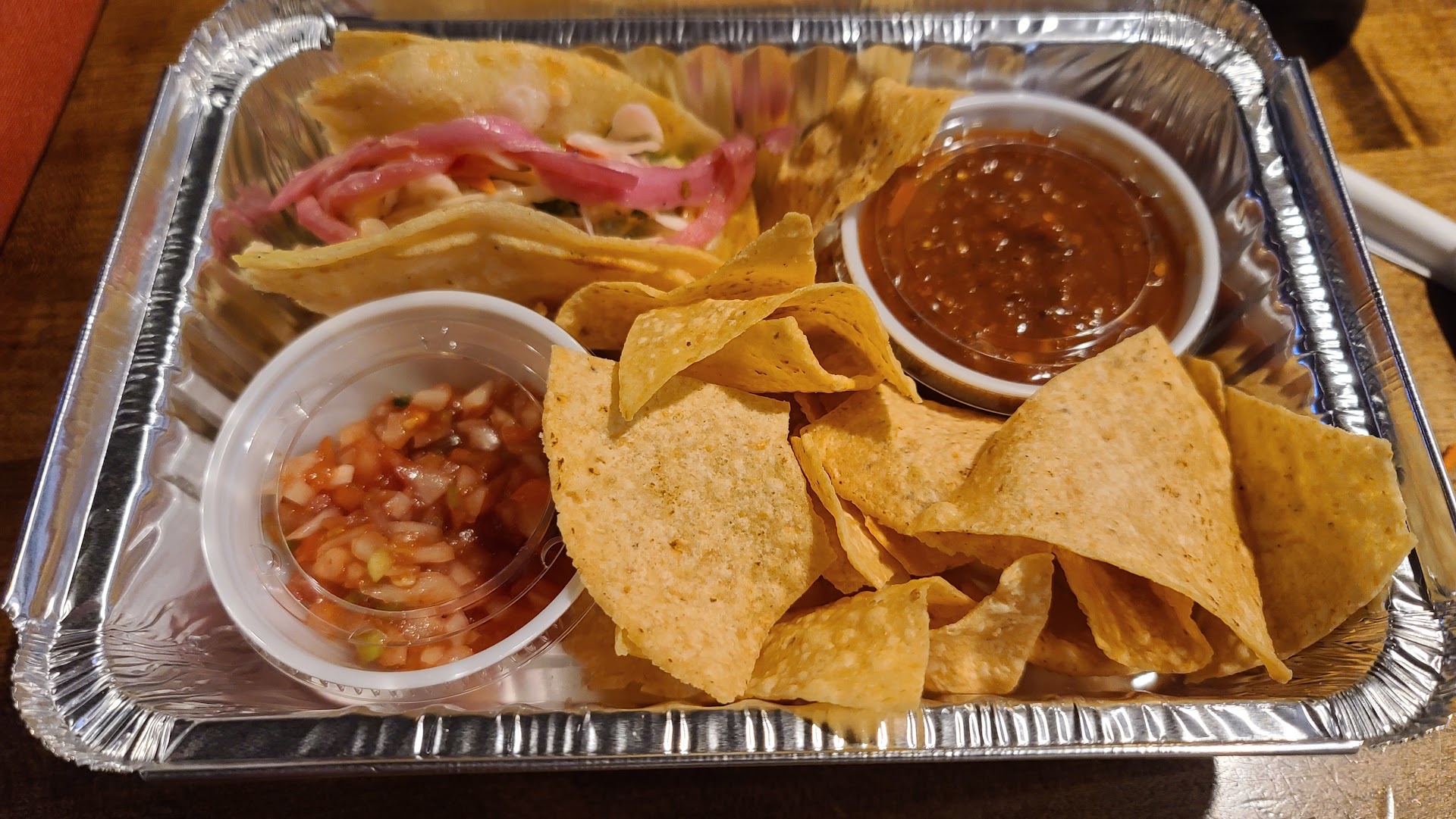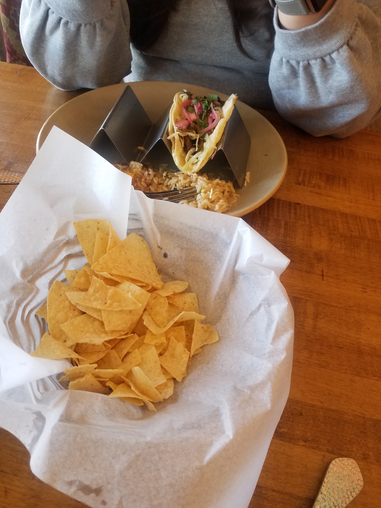 Read moreWhile in town for a marriage retreat, my wife and I went on a snowy Friday evening with three other couples on a tip from a friend (who also joined us with his wife). We sat at a large table in the center of a spacious room with a warm, inviting atmosphere. The staff is friendly, courteous and helpful. We started with baskets of chips and salsa, served in oblong, iron dishes with a compartment for each of three types of salsa. I couldn’t get enough of the smoky (and quite spicy) rojo. The chips were good, but the salsa was outstanding. I had water only, but my friends loved the drinks, especially the avocado pineapple margarita.