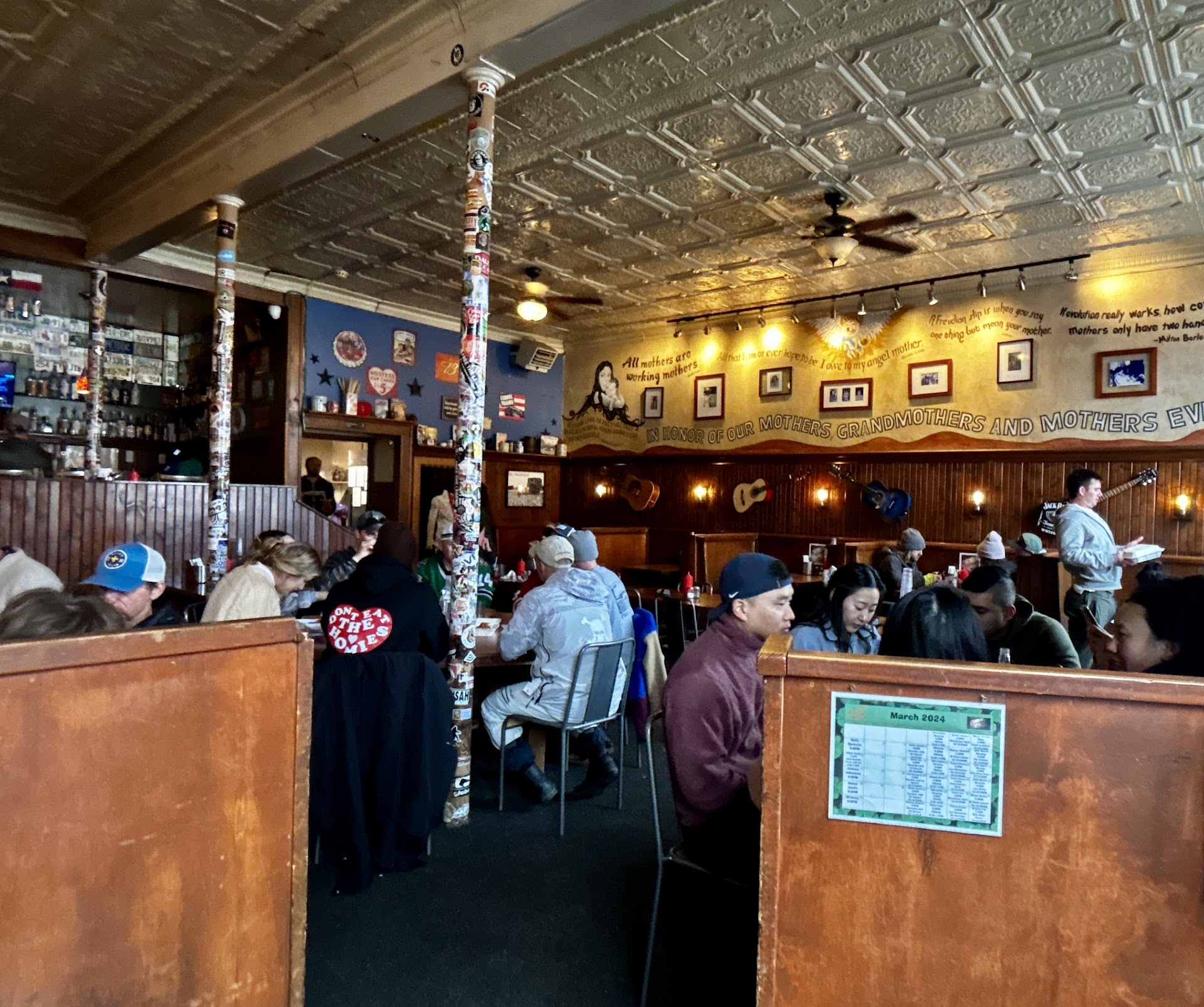 Very much a letdown, however we did get lucky and landed a large table around 5:30pm on this Saturday night, before Thanksgiving this year, to sit our large party of eight. Behind us, the place filled before we realized that every chair, with what appeared to a very local crowd with kids adults, elderly and us . . . vacationing tourists.