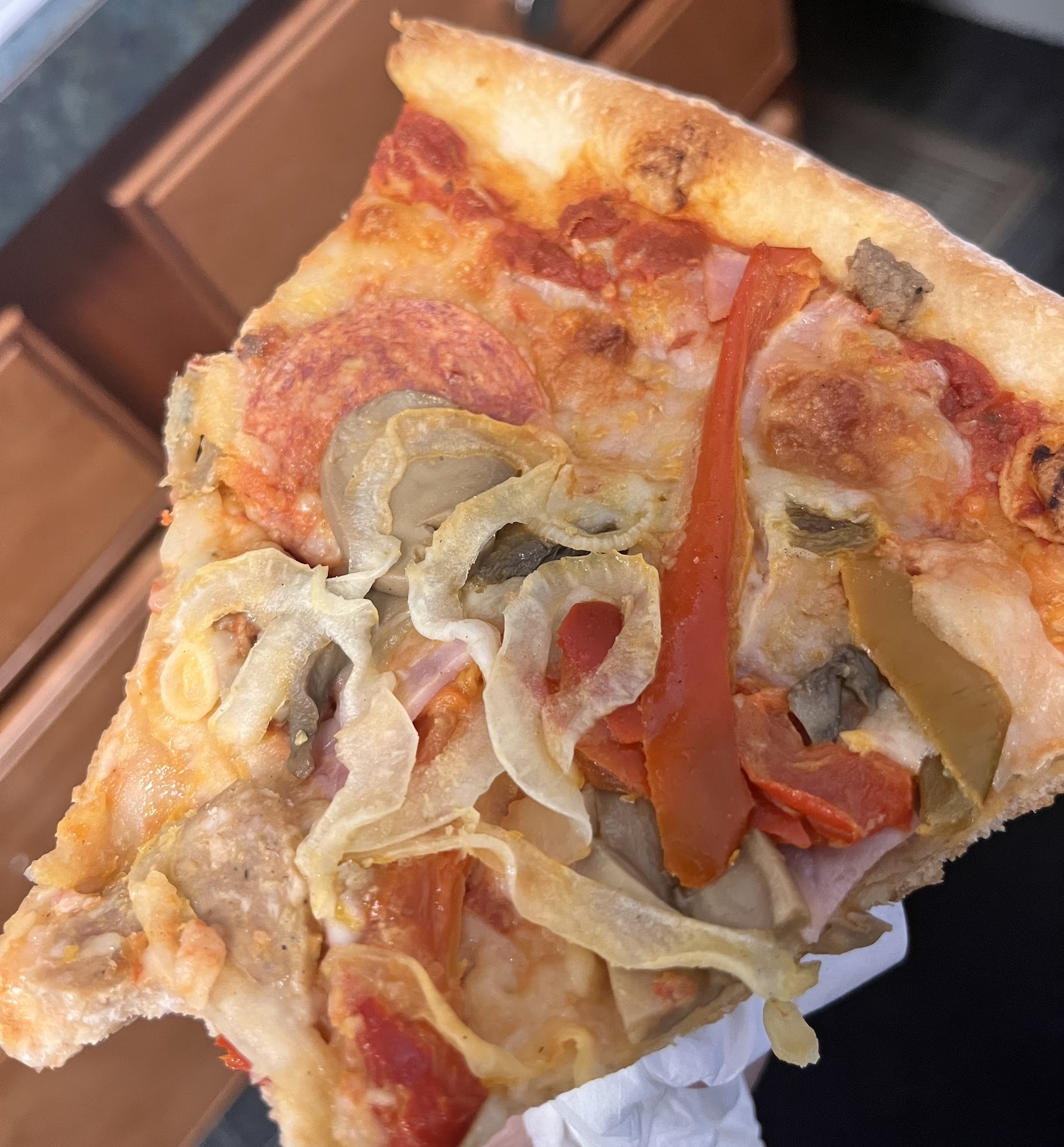 The stromboli is freshly made with all FRESH ingredients. The peppers and onions are not limp, overcooked veggies but still a little bit of fresh firmness in them. Quality meats and cheese.