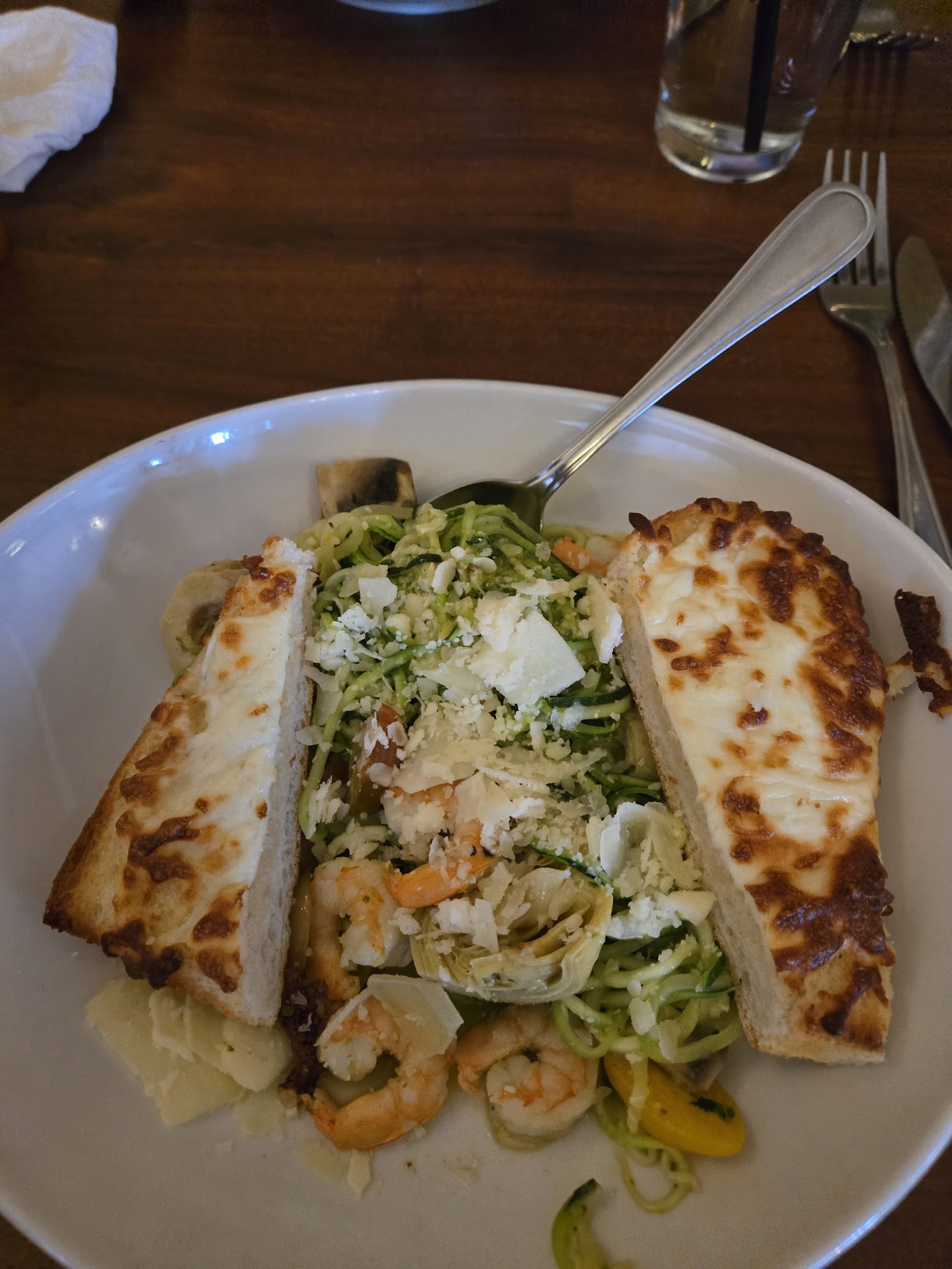 I'm gluten free and the options were okay. I had a GF side ceaser salad and the entrĂ©e of shrimp zoodles with pesto. I do think the serving was overpriced. I personally loved the ceaser salad but hated the zoodles. It was weirdly sweet and very bland. The zoodles were just one large crunchy clump. đ«