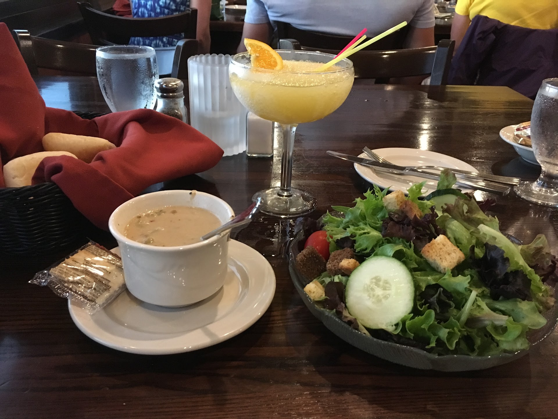 Read moreWe had the Prime and Shrimp Scampi and the Petit Steak and Shrimp Scampi, with au gratin potatoes and spicy Philly steak soup---served with amazing warm rolls. The Petit Steak was flavorless -- add some seasoning please! The prime was cooked as ordered but served with too-salty au jus. The shrimp was also just ok. Nice big shrimp but not a lot of flavor. The au gratin potatoes were made with Hash Browns not fresh cut potatoes so they were basically cheesy potatoes. The soup was great though! A bit overpriced for...
