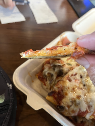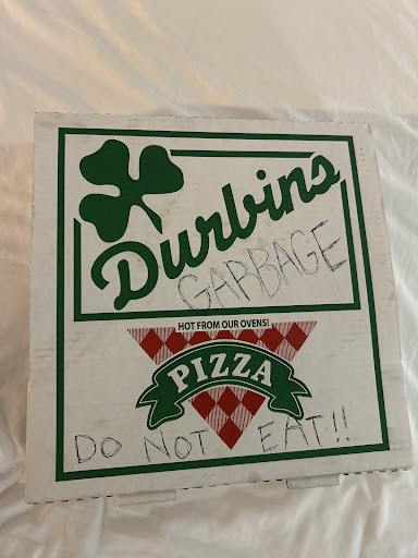 I never seen such a thing at any business like this place I've been to a lot of pizza joints and thought the taste of pizza was so so not the best in my opinion. If I would of known this would of been my experience I would of just gone across the street to Village Pizza were the prices were a lot better with better quality toppings and the owners are friendly to there customers and ordered there and just took my pizza home with my friends and family and would of saved a lot of money on top of it and could of taken everyone to the movies with the money I would of saved. I guess you live and learn I wanted to try Durbins out but don't think I'll eat there again because of there service for one and the amount of money and time it costed to get food here. Better quality pizza and friendlier people are right across the street at Village Pizza along with way better prices too oh well I guess you never know unless you try first I guess sometimes it's just better to stick with things you know are good and can enjoy...