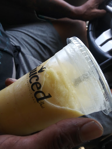 That morning, I was sent on an errand for my manager around 8:30AM and as I was leaving the parking lot of that errand, I saw Juiced by Shic across the street and darted right over. I walked in and was greeted by both Antonio and Needa. They were both friendly and seemed genuinely happy; not like when you have to paste a smile on for work. Anyway, I tell Needa I've never been there before and ask what she recommends. She tells me her favorite is Matcha Made In Heaven, so I ordered it.