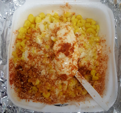 I also ordered elotes. I am generally disappointed by elotes in restaurants because it's never close to what the elotes guy selling from the sidewalk makes. This was very close! It's possible that cotija cheese was used because it actually melted, unlike Kraft, and when I said I wanted it spicy, she showed me the amount she put on and asked if I wanted more. They pay great attention to customer preferences.