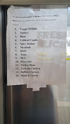 Well the only thing I can say about this Subway is it needs to be revamped new manager new district manager new employees this place was disgusting I walked in on Friday night and the place was filthy the manager was running around trying to do wiping down and stocking and everything else with two employees wasting their time in the back when they did come out the young man had so many piercings in his lip and mouth and nose it was disgusting the counters were filthy food all over them in the cracks in the crevices all over the the board when he came out to make my sandwich I had to tell him I needed fresh lettuce because the lettuce that was there was disgusting so they brought out two more things of lettuce fresh with attitude when he went to make my sandwich he put his gloves on was fixing to make my sandwich got the meat on it and the cheese which I had to tell him three times what kind of cheese then he drops the knife and reaches down grabs the knife off of the floor without changing his gloves he reaches in and grabs my spinach to put on my sandwich I told him he needs to change his gloves because he dropped something and picked it up off the floor he got angry with me rips his gloves off and grabbed new gloves at that point I decided I was going to leave the manager I feel sorry for her because she doesn't know how to manage and the two employees need to think about another career path my mother was in the restaurant business for over 40 years and she would not have tolerated any of that I hope this helps...