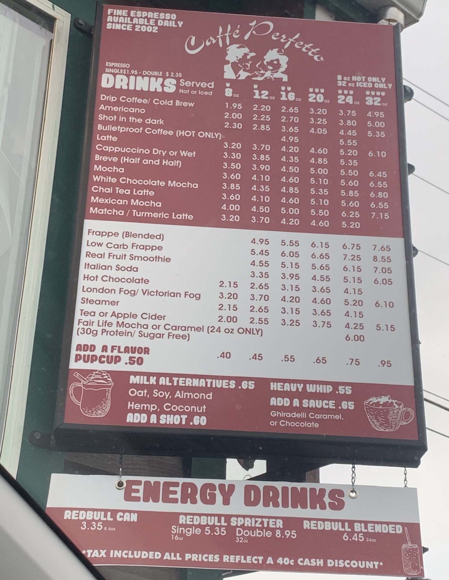 The barista was friendly enough, a little bit of chit-chat, which is fine; he wasn't rude. Everything around looked clean and tidy; as I stated earlier, Caffe Perfetto has been around for quite a while, so they are obviously doing something right! Anyone interested Caffe Perfettos location is 2811 Wheaton Way in Bremerton, WA. Just off Sheridan Road as well. They are neighbors with Taqueria Los Cazadores Mexican Restaurant, and across Wheaton Way is Saar's Super Saver Foods. Pickup or order for delivery through Grubhub!
