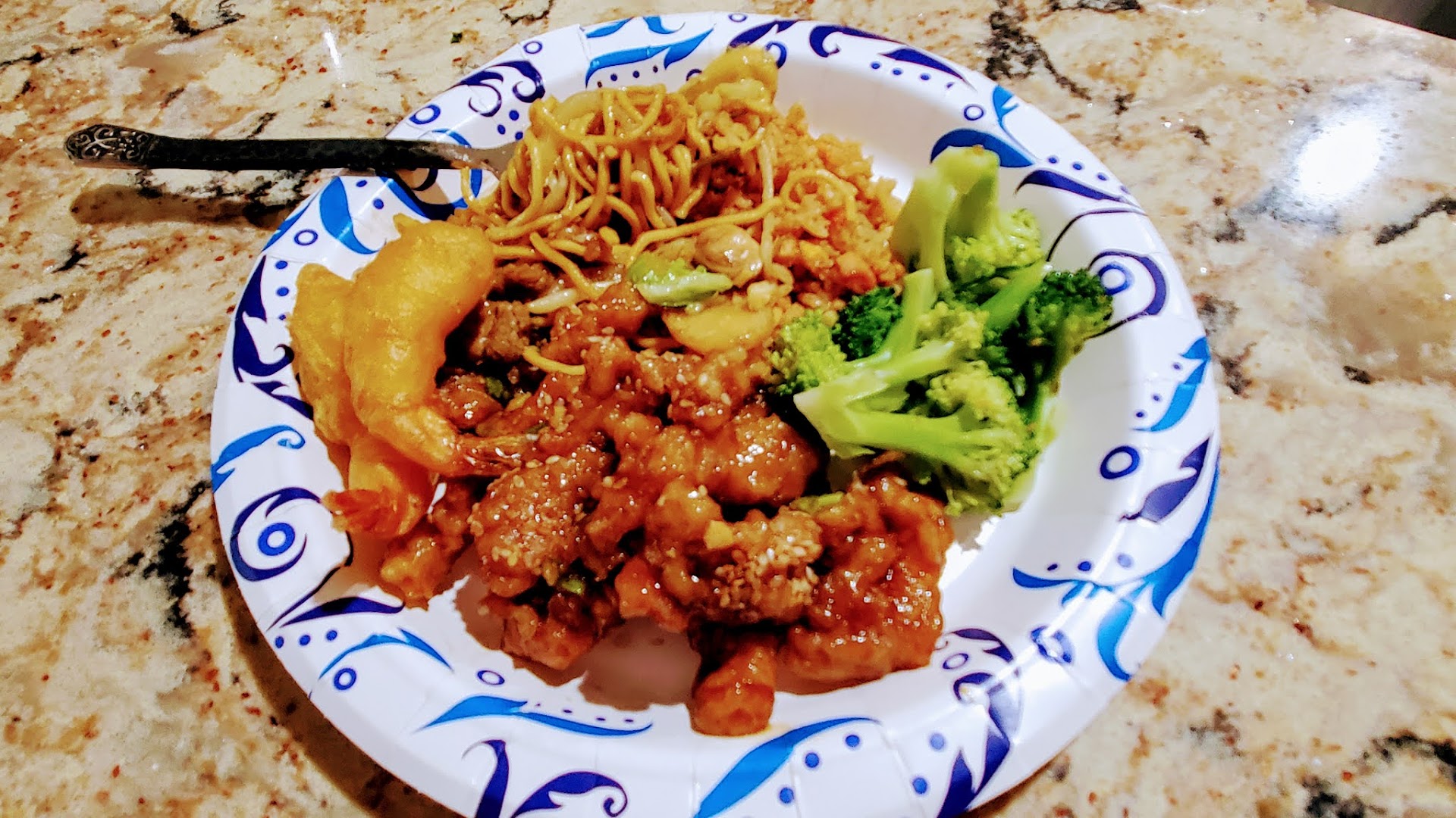 My husband had the Peking Sesame Beef with fried rice instead of steamed white rice. Before Covid, they would typically ask what kind of heat you wanted between one and five, five being the hottest. They didn't ask that this time; although being delicious, there was no heat. We can't complain; the taste was certainly there all the way around and we'll re-order that in the future and request some heat =D