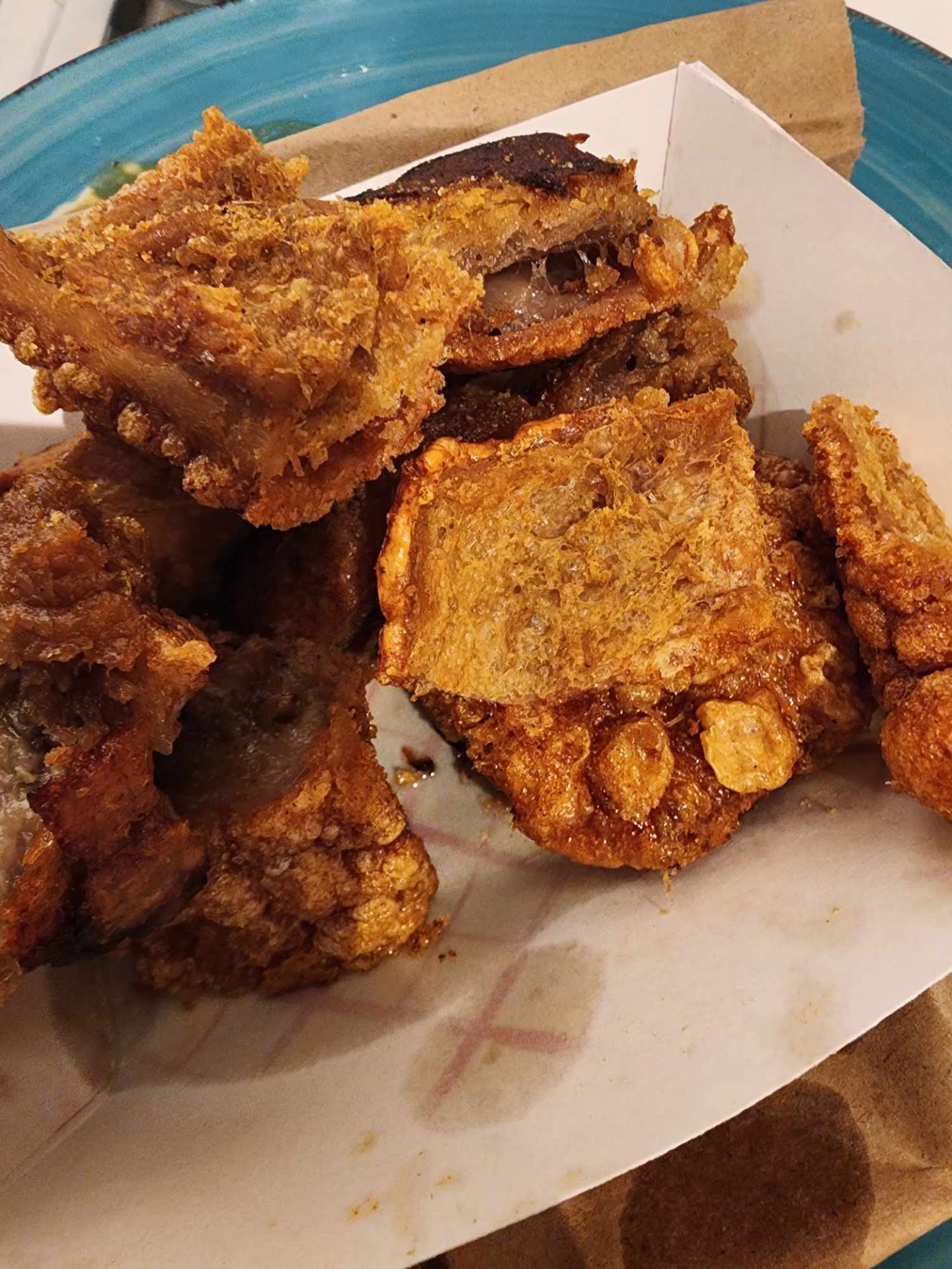 Having spent a decent amount of time overseas enjoying Filipino cuisine I found myself excited to try something local as well. My personal favorite dishes has always been Pancit, Lumpia and Lechon Kawali. Unfortunately this meal was incredibly bad, and barely edible if not entirely inedible. The pork belly was dry and significantly overcooked while simultaneously being extremely greasy and oily. The pork belly lacked any real meat at all, and was comprised almost exclusively of fried skin. It was essentially overfried pork rinds that were underseasoned and extremely hard. The rice was also dry and tasted extremely old and worn out, like it just wanted to be put down, but not eaten.