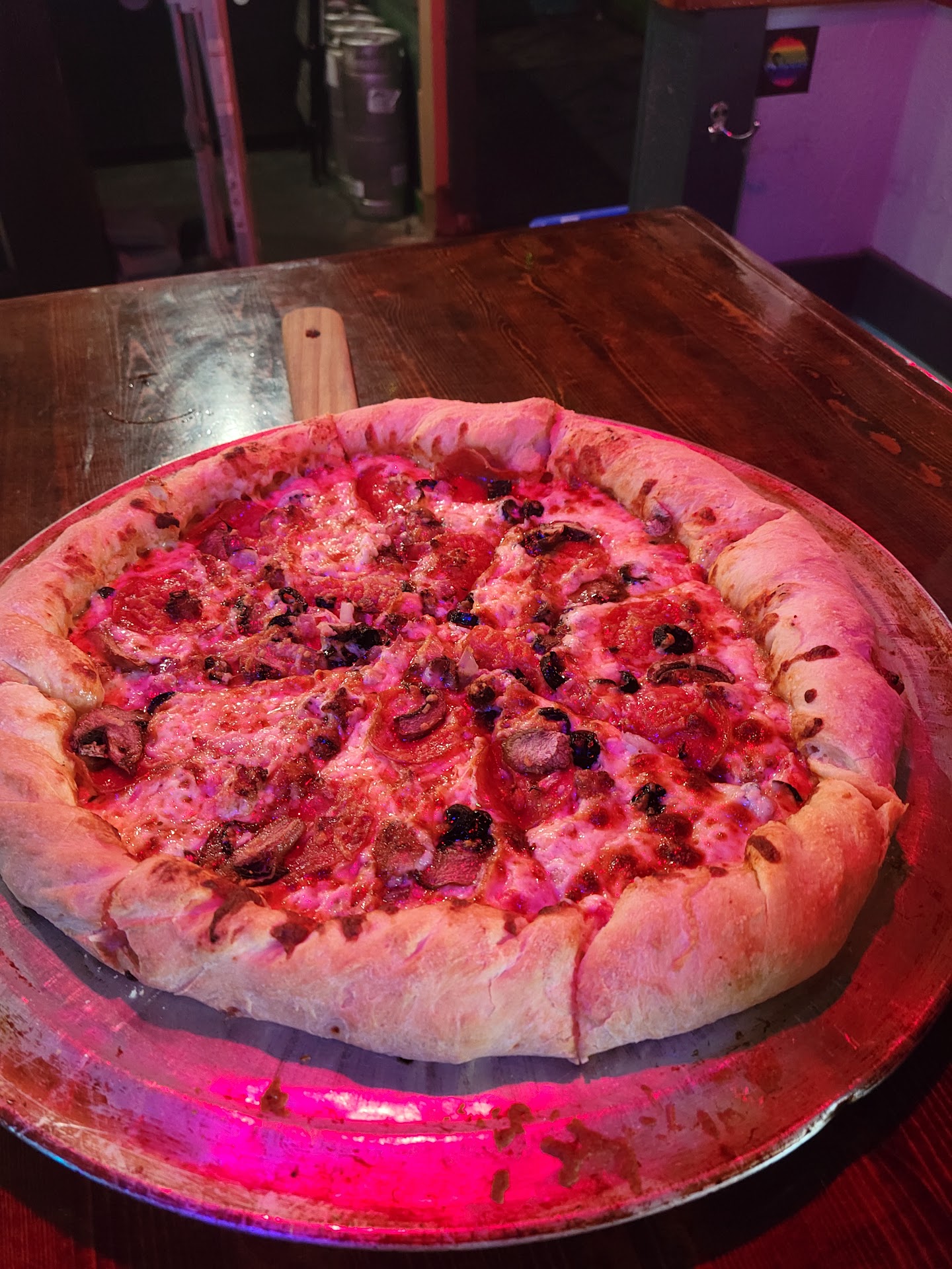 We sat down and waited for over 15 minutes. No acknowledgement, no greeting. Finally I walked up and ordered 2 Moscow mules, a large Surpreme Pizza, Deep fried mushrooms, and a salad.