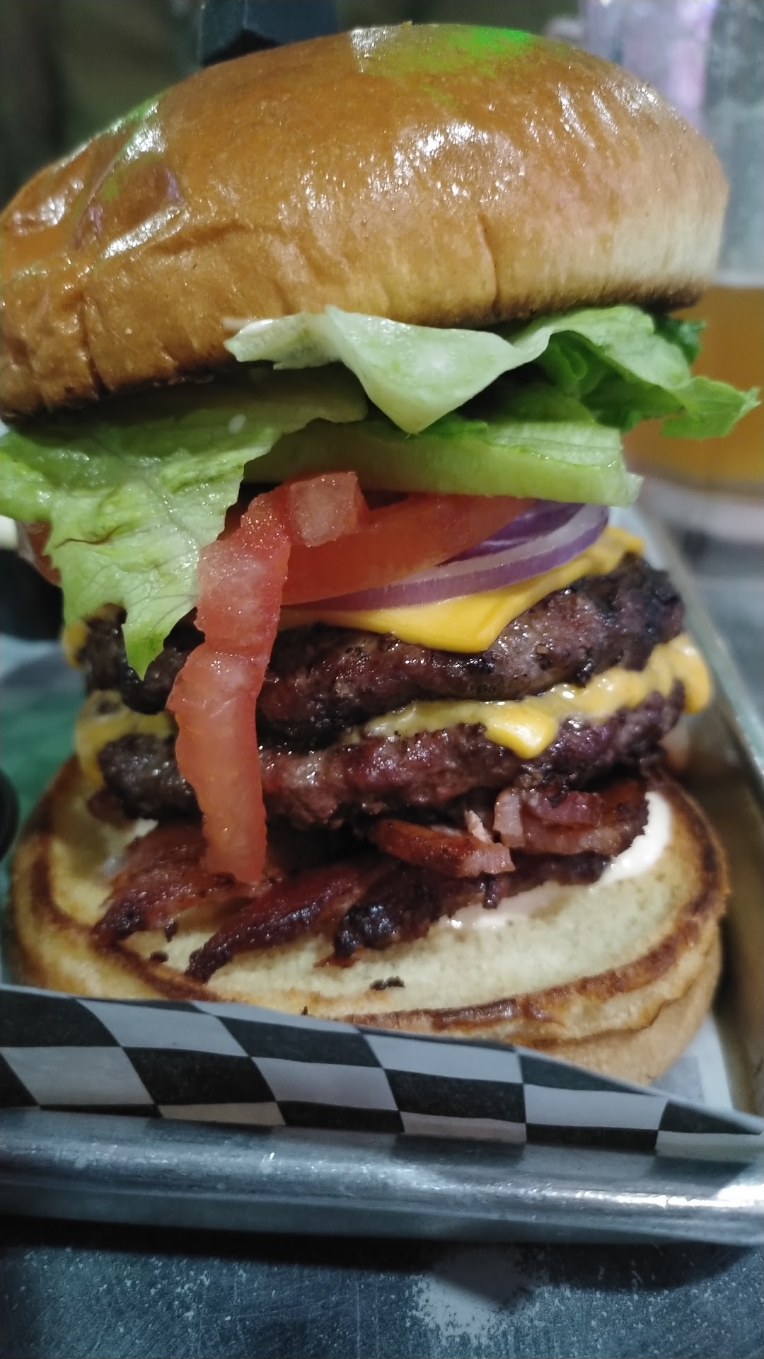 Talk about a fill up! This place has amazing food that will leave you feeling amazing from the flavor and stuffed from the portions! We were served by the amazing Erica who did a great job, who was also kind enough to give us some travel tips! We started off with the torpedo shrimp, and then I got the bubble top with tater tots. I’m telling you right now, I couldn’t even finish the tots. The burger was phenomenal, with massive pieces of bacon, two delicious patties, and a very well cooked egg! The prices are reasonable, the torpedo shims certainly contributed to cost but they were well worth the cost, if just for the sauce alone! The vibes were immaculate, the food was absolutely blowing us away, and the service was done incredibly and with a smile! Highly recommend to anyone passing through! WARNING: DRINKS COST $5 EXTRA! They bring like a whole small pitcher just for you, but it definitely stacks up on the bill! Keep in mind!