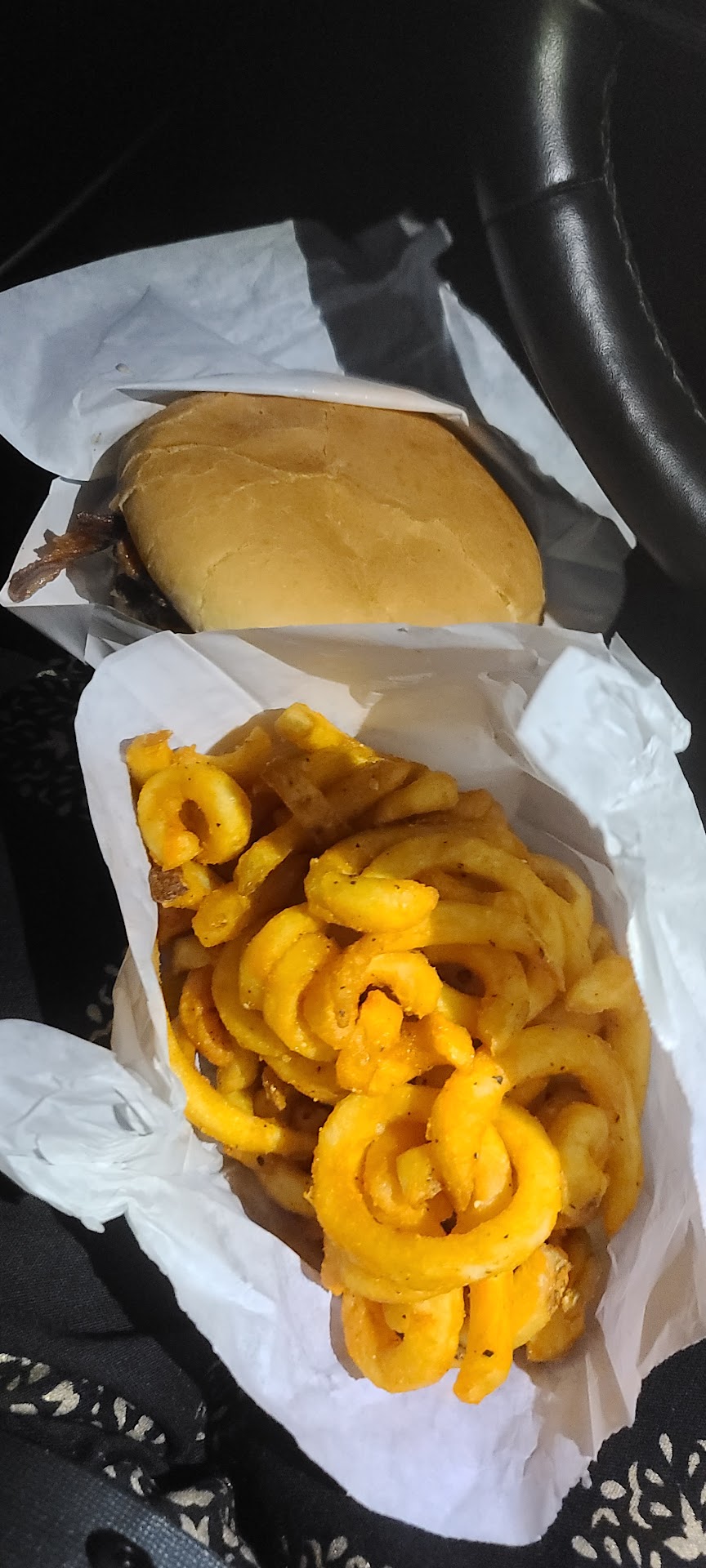 Food: Dair Bar has an expansive menu, but the main draw is the burgers. I ordered a Bacon Cheeseburger with Curly Fries, but there are healthier options available.