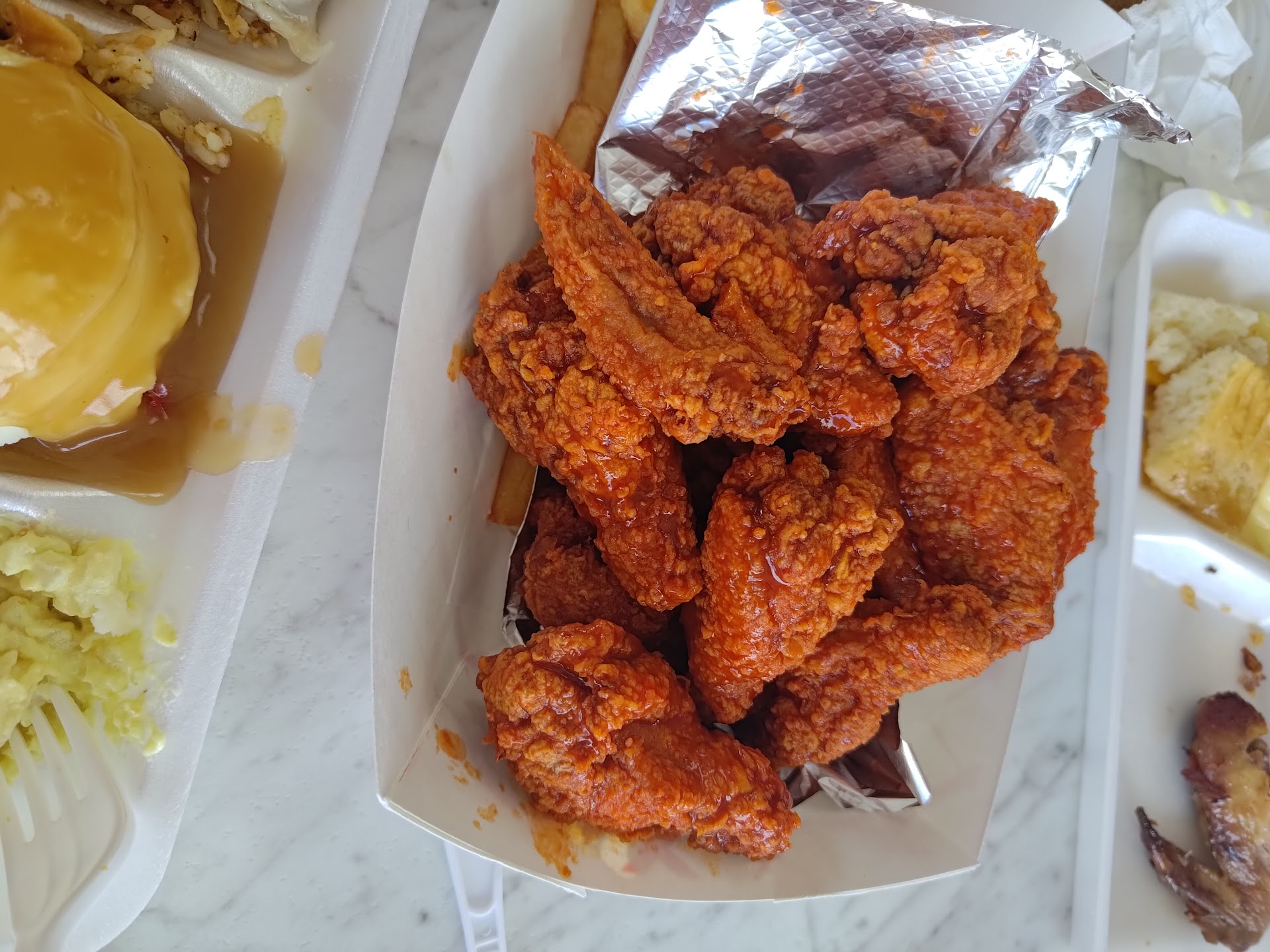 Read moreToday we stopped to get chicken for dinner to take home at around 6:00 pm. After placing my order for the 9 piece legs and thighs special and additional sides and paying for my order, I was advised that they were out of thighs and it would take 14 minutes to cook thighs. I was offered 9 legs to complete my order. I countered with how many extra legs will you give me to compensate for the difference in thighs versus legs. His comment to me was none. You will have to wait 14 minutes if you want thighs. I ask him what about customer service and he just shrugged his shoulders like he didnât care. I wish I had of just got my money back and went across the road to Bushâs Chicken but I didnât and left with 9 legs. Thus my review. Any other chicken joint I have ever visited have always offered upgraded pieces when they did not have what I ordered, if it was available.