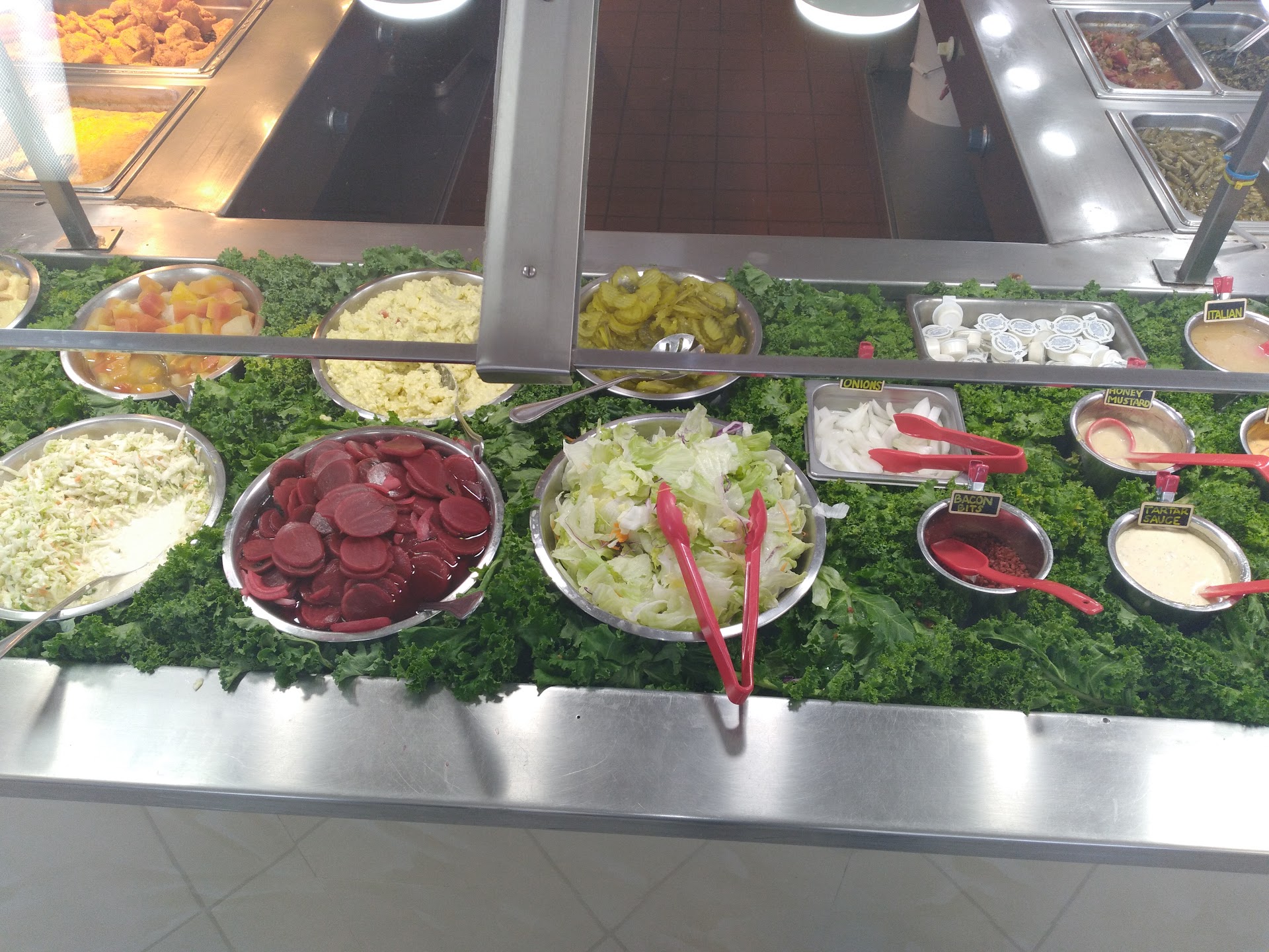 Read moreI was coming back from Houston and was looking for a place to eat, and didn't want to wait another hour until we hit Austin, so this place was definitely a nice find. Seriously, a chicken buffet? How much food could they offer? I laughed at first but when I stopped by, it was a place I needed to try. They have rotisserie chicken, fried chicken, chicken tenders, fried liver, fried catfish, and some spicy chicken. They have a full salad bar. They also have a plethora of side dishes and deserts like mash and gravy, Mac & Cheese, dirty rice, puffy bread rolls, banana pudding, peach cobbler, collard greens, and a bunch of other stuffs. They also have soft serve ice cream. The fried chicken was really good, it reminded me of Jollibee fried chicken, I'm NOT kidding. The chicken tenders reminded me of Popeyes tenders. The rotisserie chicken was good and fall off the bone tender. The fried catfish was a little too fishy for me, but I can see other folks really liked it. There were so many good sides, which help to offset all the chicken one plans to eat :) You get all this food for less than $15, and the chicken is the tasty main attraction, that's a steal in my book! You would pay double for all this at any other Fast Food joint. For value and what you pay, I would definitely recommend coming here if you need a solid meal between Houston & Austin, or just want to give this...