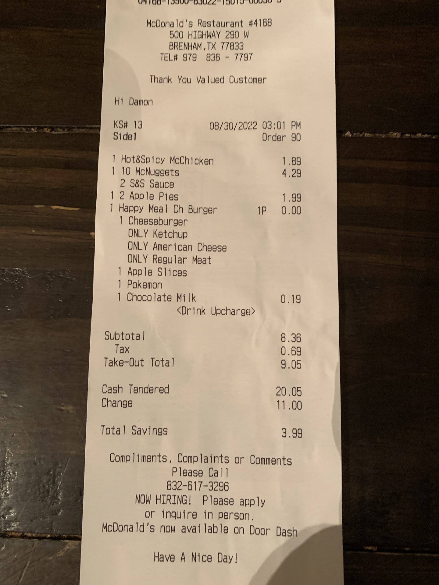 Read moreFood is decent depending on the time of the day you go late nights avoid. Employees DO NOT help at all, they actually will come up to the counter(looking down) look up at you and before you say anything DART to the back, it is so bad that especially at shift change they will drop everything and the incoming manager has to yell at them infront of customers to ask where they are at and who hasnât been help. They donât take cash which from what I found out may be a franchisee violation but donât quote me however I remember seeing on the news a McDonaldâs was under fire for not accepting cash just because they got the kiosks in đ¤ˇââď¸ but they have an actual sign telling customers no cash kiosks only so there is that. DO NOT ask for anything extra and I mean stuff they charge you for they donât honor it and get made when you call them out on it when you paid for it already, oh and bring your own drink carry if you order a lot of drinks they donât give you one as a courtesy and they get upset when you ask for oneâŚAnd this is only the main store not even talking about Westwood though they have a great manager who I hope doesnât get worn out that get stuff done over there đ¤ˇââď¸
