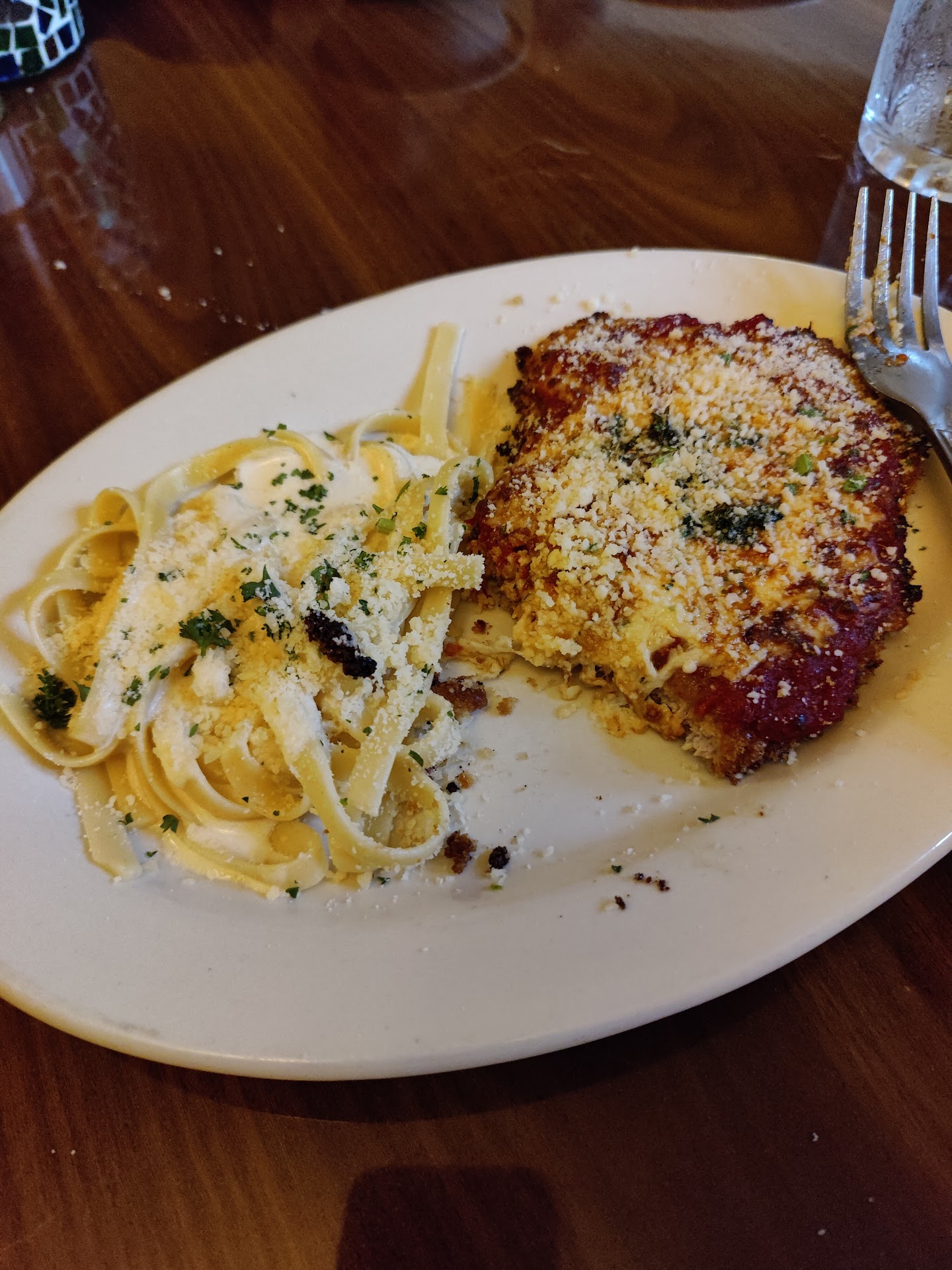That was hands down the worst Italian food I’ve ever had. From the giving us literal buttermilk biscuits passed off as homemade bread (you can argue with me all you wish. This was a buttmilk biscuit recipe that they did not fold to create layers. They just let it rise as is, left it out to set too long til it got that hard stale top, and used a biscuit cutter before cooking it- I will ALAMO on this), to not even 1/4 of a teaspoon of butter to go with said biscuits, my entree had a mixture of bagged Parmesan cheese and cheddar cheese shreds on top of it with a barley a tablespoon of marinara, to the alfredo being flavorless and underwhelming. It was like they cooked the noodles in milk and served it in the very same. My Chicken Parmesan tasted like an overcooked Totino’s cheese pizza and I will forever die on that hill. How do you mess up chicken parm. That’s the easiest dish for any Italian place and this was straight trash.