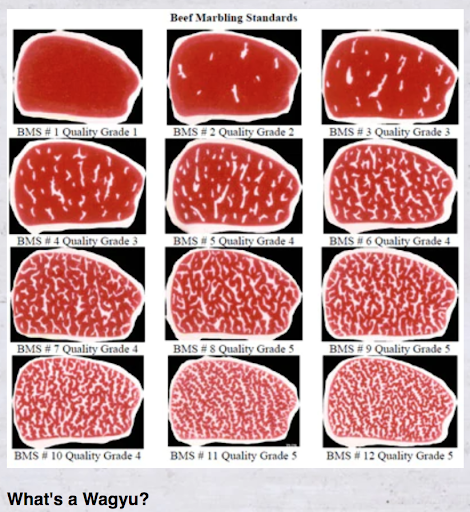 I've had better. I usually ignore advertising, but once in awhile, something catches my eye (or ear). Arby's announced that it was going to start offering WagYu Burgers. I thought "What the Heck is that?" I wondered if maybe it was some catchy abbreviation for some advertising slogan like "Way Good 4 U". Turns out is an artisanal grade of beef usually associated with several breeds of Japanese cattle. "Kobe" is a type of WagYu. It refers to the amount of marbling in the beef. USDA grades fit into the second row of the photo below. WagYu grades are in row 3 or 4. Now there is "American Wagyu", "Montana Wagyu", "Australian" etc. For this amount of marbling, my burger was surprisingly tasteless and dry and overwhelmed by the bun and "secret sauce". For a good burger, go to a specialty burger place, not somewhere know for beef sliced on a microtome. If Arby's is going to offer something that is "supposedly" so special, perhaps it should explain why it is "supposedly so special". Then it should deliver on what it promises. Nov 2023 update - lately I've just been heading down the street to Lion's Choice. They have a very good Hot Italian Roast...