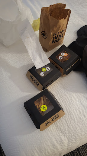 Food is hit or miss, sometimes the wings come out looking like they only spritzed sauce or sometimes they come out in a soup of sauce or sometimes you are left wondering if it is ever going to come out at all. They need to clean house, yes that is a rough thing to suggest but if I were the owner paying the sky-high rent and utilities and overhead, I wouldn't want lazy folks to bankrupt me, which I can assure you they are doing. There are plenty of folks out there that could come in and do a much better job. All it would have taken was a visit from the food inspector to come in and see all of the filthy tables and they would have had a field day and then the manager would have to deal with the aftermath of the goof off...
