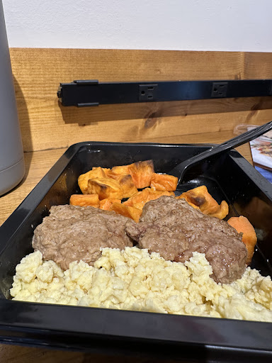 The pics attached on my review shows me enjoying the scrambled egg, turkey, sausage, and sweet potatobreakfast protein energy meal that was a healthy delicious option to fuel my day and post workout meal.