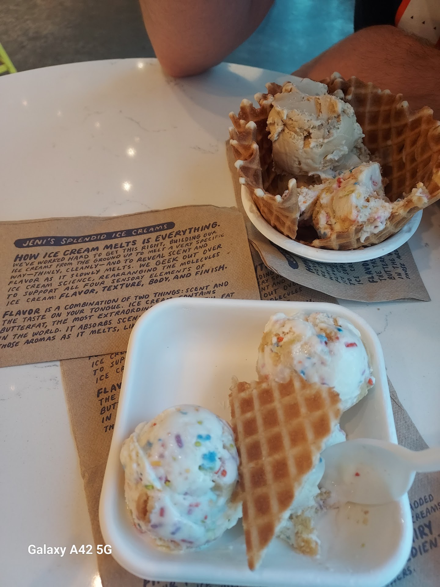 Ā Ā Ā Read moreOh boy, talk about some special ice cream ! Jeni's has some really unique flavors, I mean Really Unique! Once you walk in the door , the smell of fresh baked Waffle Cones hits you and man does it smell good. And when you get a look at the Ice Cream selection, you're totally blown away. I meet a lady while waiting in the line for my Ice cream, she had her kids there and told me their Ice Cream was overrated. I think she was too into fast food ice cream because this Ice cream at Jeni's was Fantastic! I had the three half dips for $6 and it was worth every penny. My choices were the I've ever tasted ! I'm not going to tell you what I had because I want you to make up your own mind and not be like the lady in the line. Too judgemental and one sided. Believe me, what ever you choose is going to be great ! The prices are a little high, but if you want some special Ice cream, like I said, it's worth it. The people are very friendly and quick, so even if there is a line, it's only because it's hard to make up your mind. I'll definitely be going back to Jeni's when I'm back in...