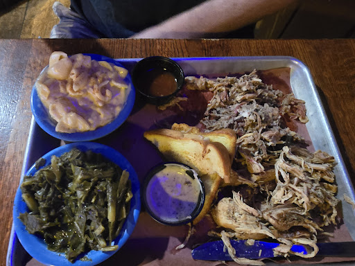 I always look for green beans on a menu at a barbeque joint, it's key to the BBQ experience for me. Judge Beans gots the beans! And they were delicious! Also, if you're going to serve pulled chicken, you really should offer the white sauce. That's what MAKES pulled chicken. Judge Beans has that, too. Their white sauce has a thick consistency, and if not the best I've ever had, it's pretty freaking close. Can't think of a better one off the top of my head...if you've never had white sauce, try it. Unless you hate mayonnaise, then don't try it. White sauce is mayonnaise based and sometimes has a little horseradish. It's SO good on poultry. Now...I had the the pulled pork plate with green beans, obviously, and fried okra. The fried okra was really crunchy and delicious, and at least half a pound of it on my plate. The hubby got the pulled pork and pulled chicken plate with turnip greens and mac n cheese. That white sauce though...🤤 he also really liked the BBQ sauce that came with the pork, it's more of a vinegar based sauce, which is not my thing. But they had a thick sweet on the table and that IS my thing. And it was good with a little of that vinegar based mixed in. It came served on those shallow metal trays which are perfect for barbeque. Plenty of space to experiment with the sauces. They also have their own Judge Beans pepper sauce you could mix in for a little extra kick. We both had the sweet tea, it wasn't overly sweet, so it was really good. I really wanted to try the sweet potato fries, but I knew I would never finish HALF of what I had on my plate. So, next time, I'm getting those for sure. There were so many yummy looking items on the menu and not enough room in our stomachs. They also had a full service bar, saving that for next time as well. No idea if they have dessert, didn't make it that far. 🤣 Now we discuss the staff. It's a seat yourself kind of place but we were still greeted at the door by Emma. She cleaned our table, brought us menus and silverware, took our drink order and then gave us plenty of time to review the menu without us feeling forgotten. She constantly acknowledged us and checked on us. I observed her with the other patrons and there was an older gentleman with a LOT of questions and she was so kind and patient with him and incredibly helpful. She was thorough in her explanations and brought us to go boxes and a bag to put them in, that's actually important information because most places don't give you a bag and without a bag our leftovers would have been on the ground in the parking lot. I'm known for dropping food. 😬 Anyway Emma was exceptional and we'll...