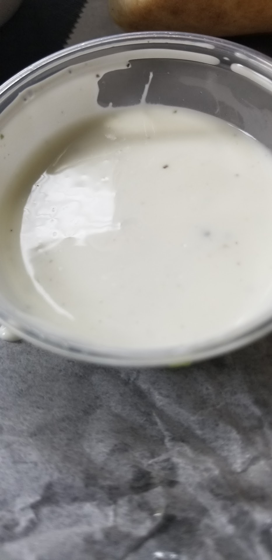 Hummus - when I opened the container, the hummus was close to rock hard but didn't seem cold. Eventually it softened a bit, and as I added minced garlic and the minced garlic juice, it found a better consistency. But kind of bland to begin with.