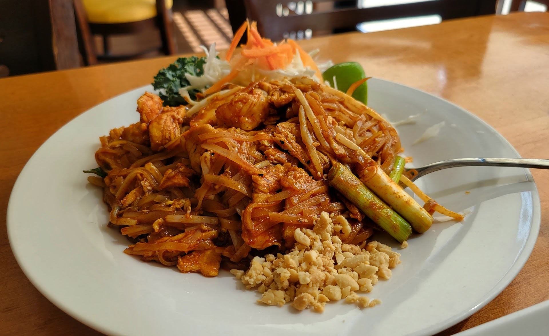 Read moreWe tried this back around 2010 when we heard all the good reviews. We tried their sushi options that were good but not really outstanding. We were in the neighborhood, so we decided to try it a second time. The restaurant was clean, and the service was very attentive. They offered us a complimentary spring roll that was a little soggy and not very fresh in flavor. Next came the spider roll, which was small for the price, and again, the oil tasted old and overused (we wouldn't order it again). This was after the lunch crowd around 1:30 p.m., so I wouldn't order anything fried by the dinner service. Now, for the good, we ordered their Pad Thai Chicken/Shrimp. It was well presented with a good overall flavor. It was light on the shrimp (3) and chicken slices (3) with a small amount of chopped peanuts and chili on the side but made up on flavor (not hot in spice at all as it was ordered as described and we wanted a true sample). We did see some fresh sushi being delivered to another table on our way out that looked appetizing. So our experience would tell us to just stay away from their deep fryer and stick...