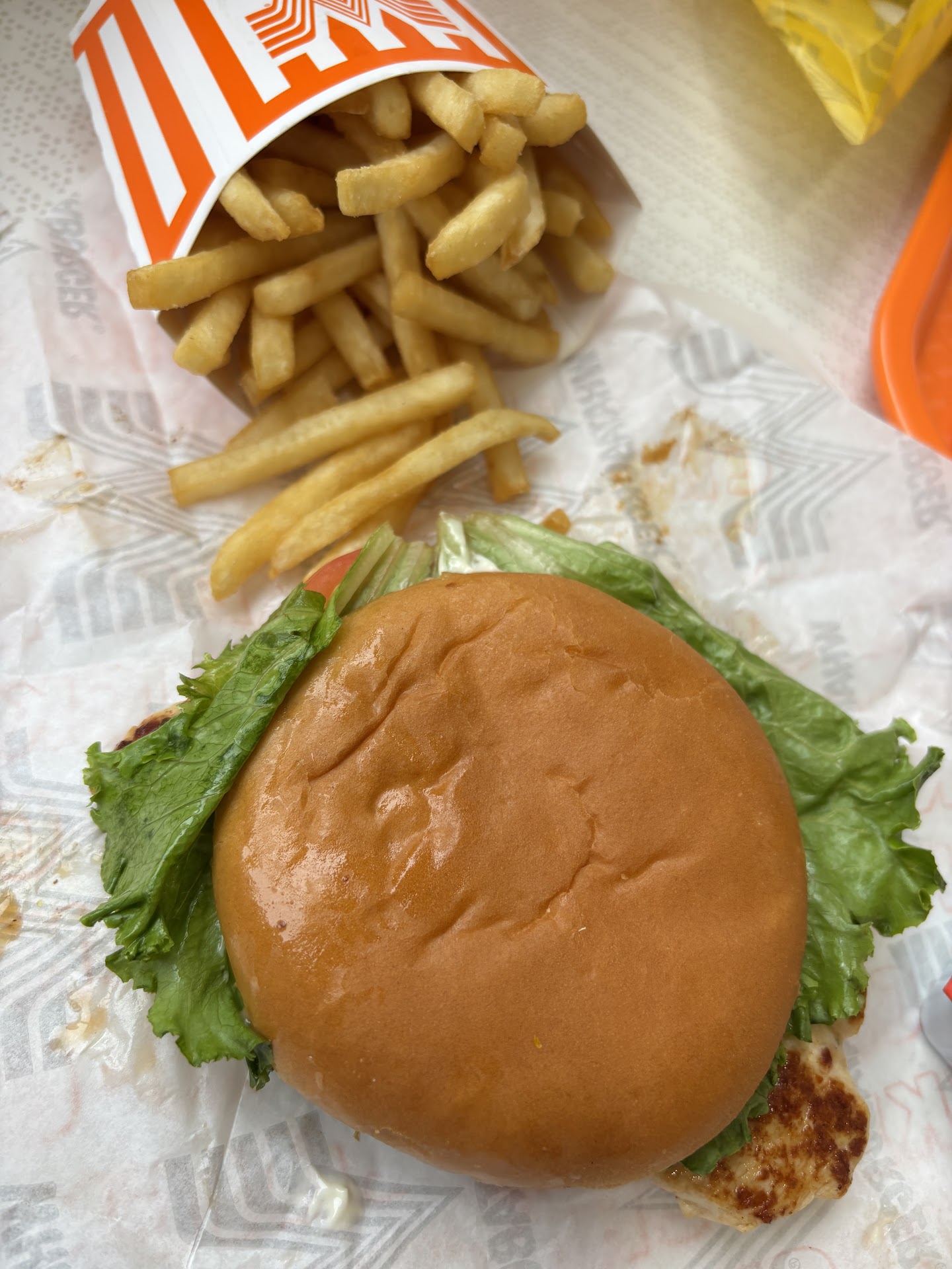 Less than 10 minutes after ordering my food arrived. It was hot and accurate. Whataburger's Spicy Ketchup is exactly what their fries need. The fries aren't remarkable, but the Spicy Ketchup gives it just what it needs.