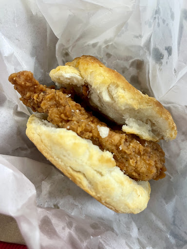 As you can see from the photos in the review below, that "chicken patty" on a biscuit is not real food, but a cheap, processed and probably soy-filled hockey puck. Even if it had been properly cooked, you don't want to eat that junk. I surmise they get all their food from the same place. And if the cooks/servers cared one iota about anything, they would never have served it to anyone, much less...