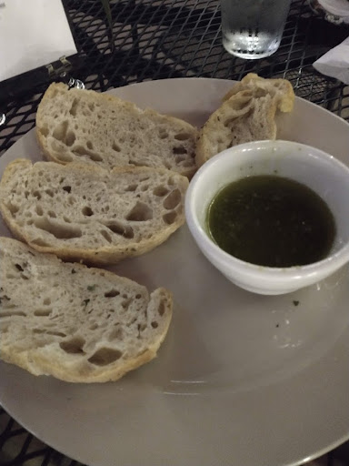Read moreThe wifey picked this place for our last dinner in our "escape from reality" trip, since she was craving steak, and we pretty much tried all the establishments in Brevard that were open for dinner at this point. We had such a hit and miss experience so far we were apprehensive. The initial impression was bad: they were on a service pause because the kitchen was backed up. We waited in their patio to figure out our next destination, and in the process we were told we could order! Woohoo! We promptly ordered an appetizer of bread and pesto, and our entrees. Mine was shrimp and grits. Their service model of counter serve was novel. They pretty much do everything you would normally expect except you have to get your own water/tea and utensils. They still serve you the food. Unfortunately the cleanliness was not up to par that Sunday. The inside looked and felt dirty. Dishes strewn everywhere and the floor was visibly and literally sticky. The outside seating, on the other hand, was very pleasant and clean in comparison! The bread and pesto was strange. The sourdough bread and pesto made for a bad aftertaste combination. I tried the olive oil by itself and it was not particularly old or foul, but the bread made it taste bitter. Strange pairing. As for my shrimp and grits, it was EXCELLENT. Lots of shrimp and sausage, and the grits were super creamy and delicious. Great dish! We had the pecan cheesecake and streusel for dessert, and they were also EXCELLENT. If you can overlook the staffing shortage, the hit or miss service and food pairings, and the relatively high prices, the food can be very rewarding. Wifey enjoyed her rib eye plate very much also.