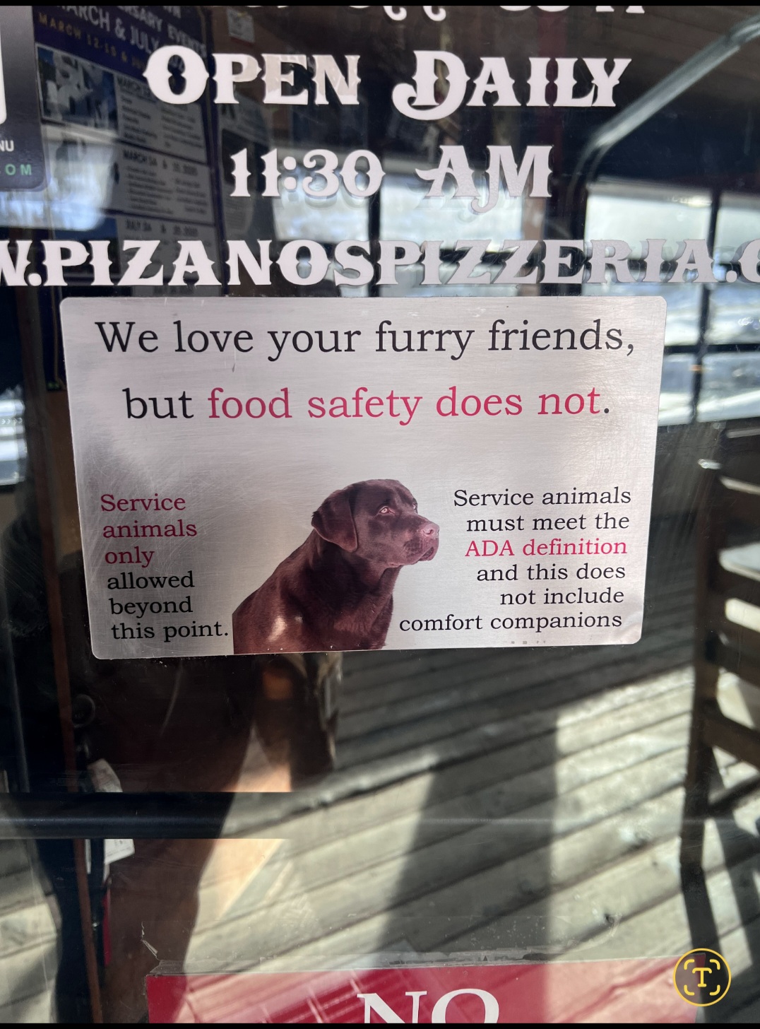 Outside dining was available & he didn't offer that. See other screenshot of ADA laws on dining in or out.
