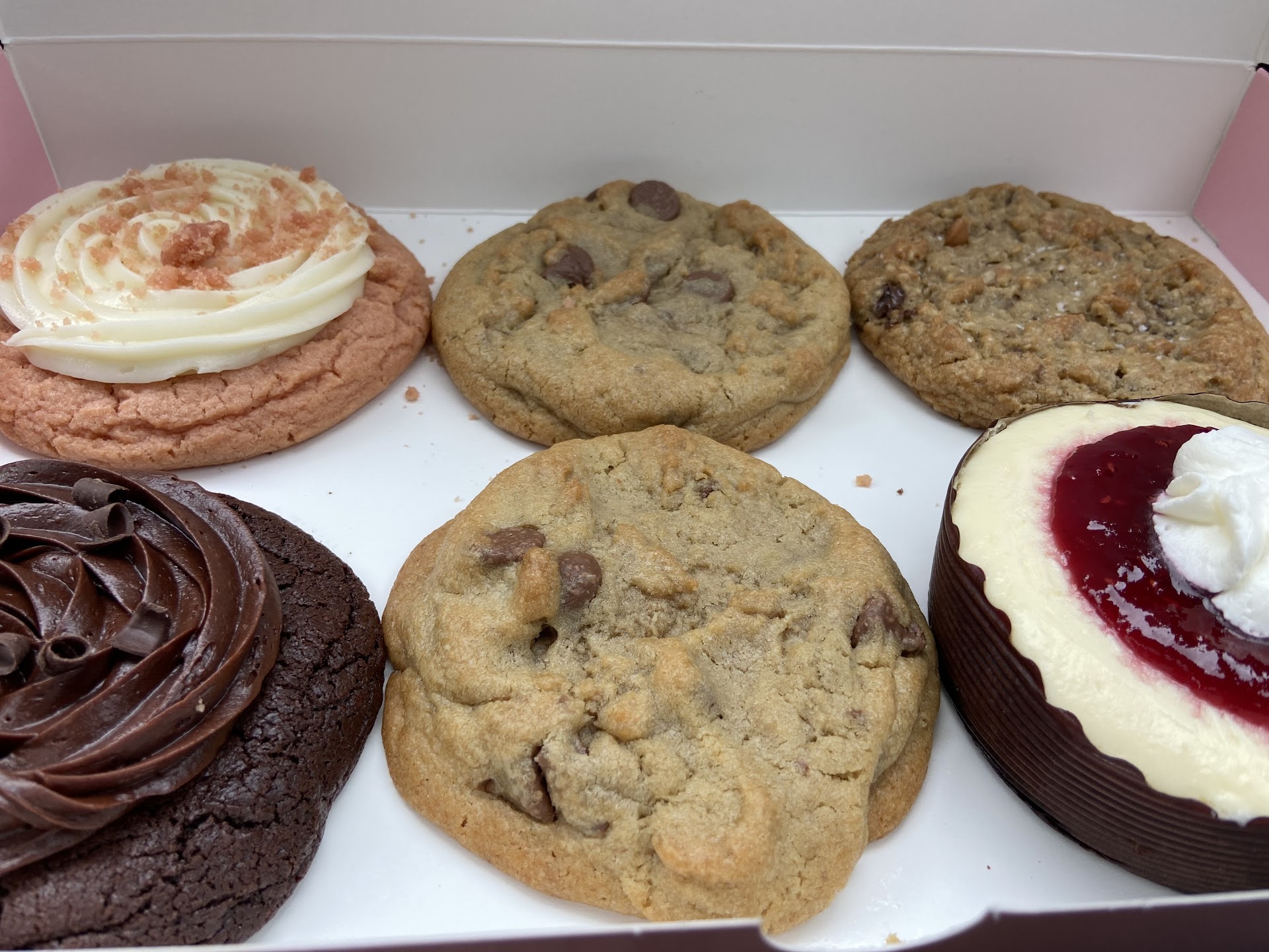 Read moreLove Crumbl and have been a loyal (almost weekly) customer since they opened in NJ. So as for the cookies, they are delicious. If you like soft baked cookies then this it! This location is closer to us than the Ocean one but surely is hit or miss. You have to check the cookies before you leave. Multiple times they have forgotten toppings and even ingredients that are supposed to be in the cookie. One week we ordered 5 chocolate cookies & cream cookies (because they are my favorite) and one fried ice cream cookie to try. My husband picked it up and didn’t know better but when I opened the box, the chocolate cookies and cream cookies were missing the white chocolate chips. That’s a main ingredient in this particular cookie! It was wild! And then we found a white hair/thread (I still don’t know what it was) in the fried ice cream cookie as soon as we broke it in half. This is just one example on one visit. The staff replaced the cookies but barely apologized. It was weird. They were kind of looking at us like we did something wrong. The manager looked like a young kid and clearly had no customer service skills. Needless to say, it hasn’t stopped us from going back but with how expensive these cookies are AND the fact they are always looking for a tip, then the quality control has to be stepped...