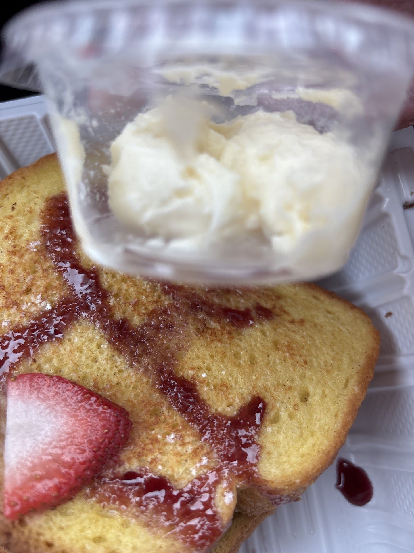 We ordered two styles of French toast to start. Meemomâs and Banana bread. The banana bread was fresh banana bread cooked like French toast topped with slices of half a banana. Extremely tasty. Like having dessert for breakfast. Meemoms is traditional, Cinnamon, powered sugar etc. The French toast is THICK. Some spots had an abundant amount of cinnamon. The only downfall is the dull knives making for a difficult slice.
