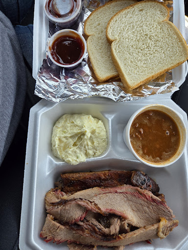Read moreI came here for the first time during lunch while traveling for work. The first thing I noticed was that there isn't a diner so I had to eat in my vehicle which was a little difficult. I ordered the two meat plate with ribs, sliced brisket, beans and potato salad. The brisket was dry and just bland. The ribs were pretty good. The beans reminded me of ranch style beans with sugar in them. The potato salad reminded me of mashed potatoes with a lot of mayonnaise in it which I kinda liked even though it was different since I love mayonnaise. Overall, the food was not as good as I was expecting or hoping for and the lack of tables to sit at...