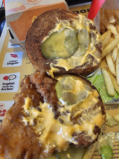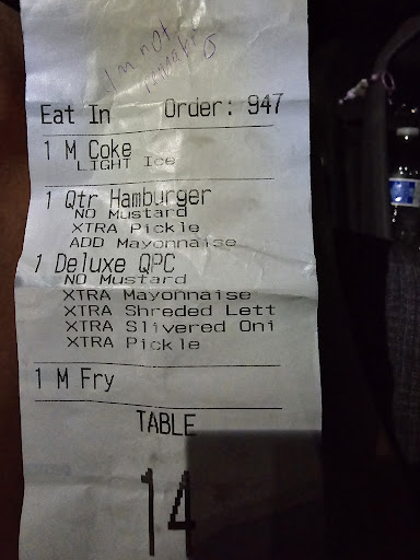 Read moreAte there late one night from a long day at work when I heard the horrendous sounds of a whale in distress. I look over and the snorting beast was angry because her son dropped her credit card into the charity box because she was stupid enough to let him pay in drive through. They cannot open the box because you know it's for charity so the boulder rolled inside with her kids so that the whole store could hear how upset she was as she explained to her husband over phone. I felt bad for the kids, seeing as they where slim and in pajamas I'm positive their mom got up for a late night slop season and used her kids to get her food Incase she inhales her money. But all sad story's end happy as the yipping 10 gallon face woman was met with a free meal by the manager for the inconvenience. I was so touched by this I bought 2 pumpkin cream pies. Whenever I go there now I get 2 pies to remind myself the day that their staff almost got attacked by a whale and calmed the beast with their...