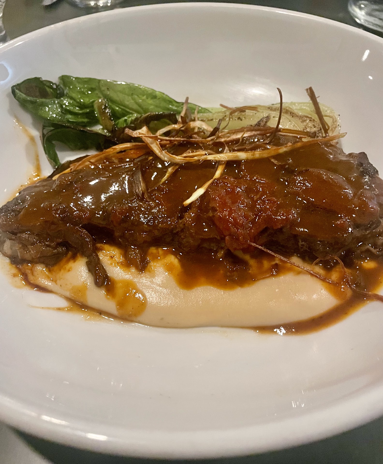 This was followed by two orders of short ribs, which were prepared to perfection - sporting a thoroughly flavor-filled crust with an absolutely pliant, melt-in-your-mouth interior. This delicious preparation was plated atop a potato purée and served with a nest of braised savoy cabbage.
