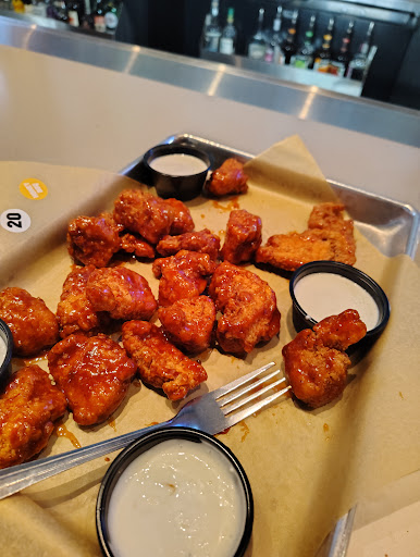 Read moreAs soon as I walk in, I felt the air change, I knew something was wrong. It was as if I stepped on to a movie set. I didn’t know what it was until I was seated, but i knew something was off. I looked around and realized that there were an absurd amount of TVs for such a small building, and the lighting felt so randomly done. And something about the interior design felt forced as if it weren’t a genuine Buffalo Wild Wings. Almost as if an alien built it. The brick... looks breakable. The yellow walls... toooo yellow. The tables... flipped. The sugar... they were out of it. The ketchup bottle... oddly shaped. AND EVERYTIME my acquaintance and I discussed this odd problem we observed, our server would pop out of nowhere. Service was TOOOOOO good... she even paid our coin change, keep in mind that we had 7 SEPARATE CHECKS! Anyway, back to the tv situation... THERE WERE SOOOO MANY! They were stacked on stack of each other. They workers didn’t even see a problem with this, almost as if they were actors on a set. WHAT IF THEY WERE ALIENS?!? What is going on at this location?!? Sorry if this makes me sound like a Karen, I just...