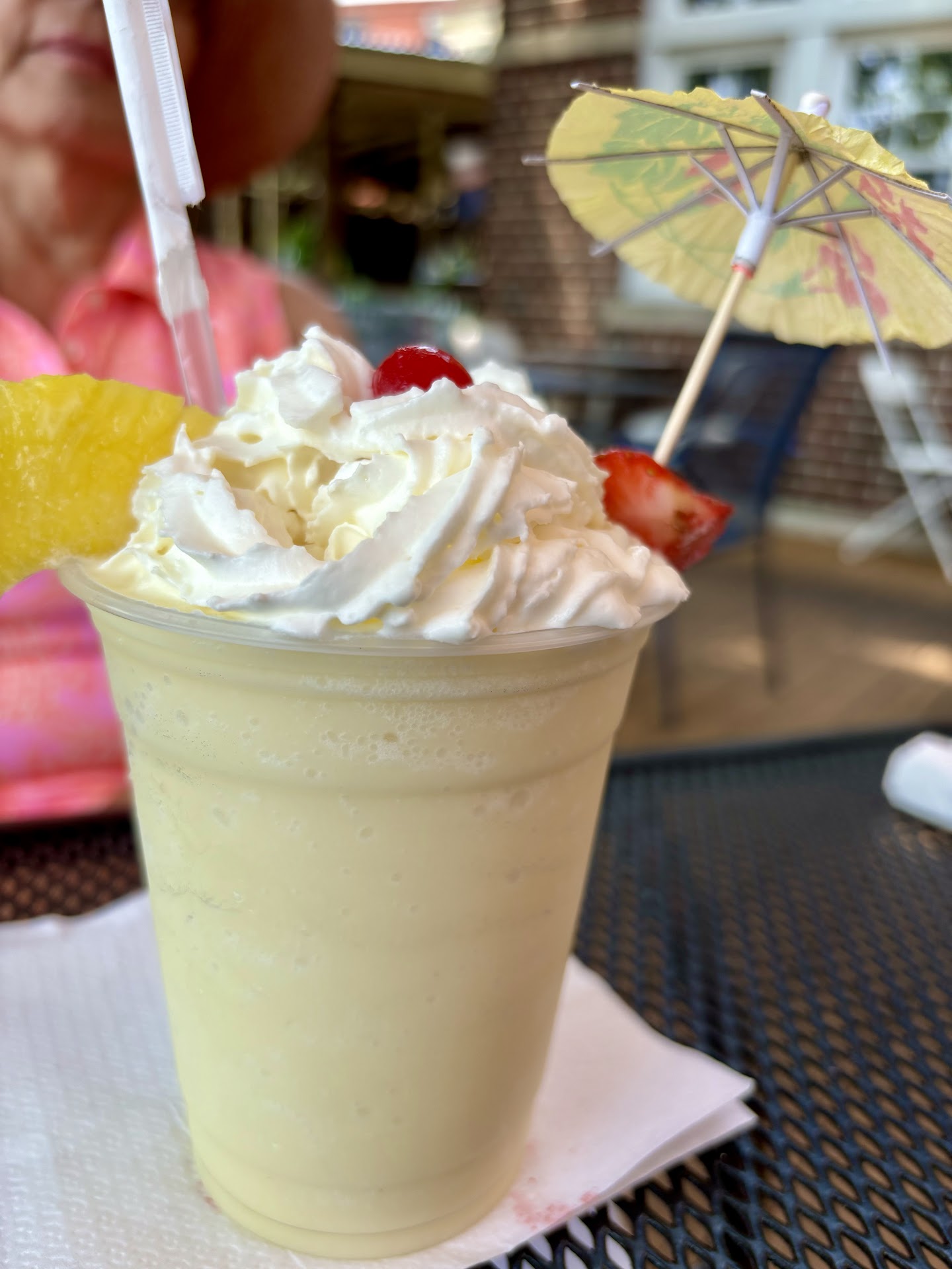 Waited for the waitress to come back in to take our drink orders and give us menus. We are now about 20 minutes in. Girl comes over takes or drink orders and food order. My brother ordered wings for the table. We had to scream over the music ( we love music but it definitely was too loud for daytime eating. 20 minutes later, still no drinks. We almost left but tried to be patient. A couple walked in, sat down got tired of waiting and got up and left. 35 minutes in we get a complimentary platter of plantain chips/mayoketchup/and ajo. Another 8-10 minutes for the drinks. Two ginger ales(cans), one pina colada and a strawberry slushy drink with water on the side.