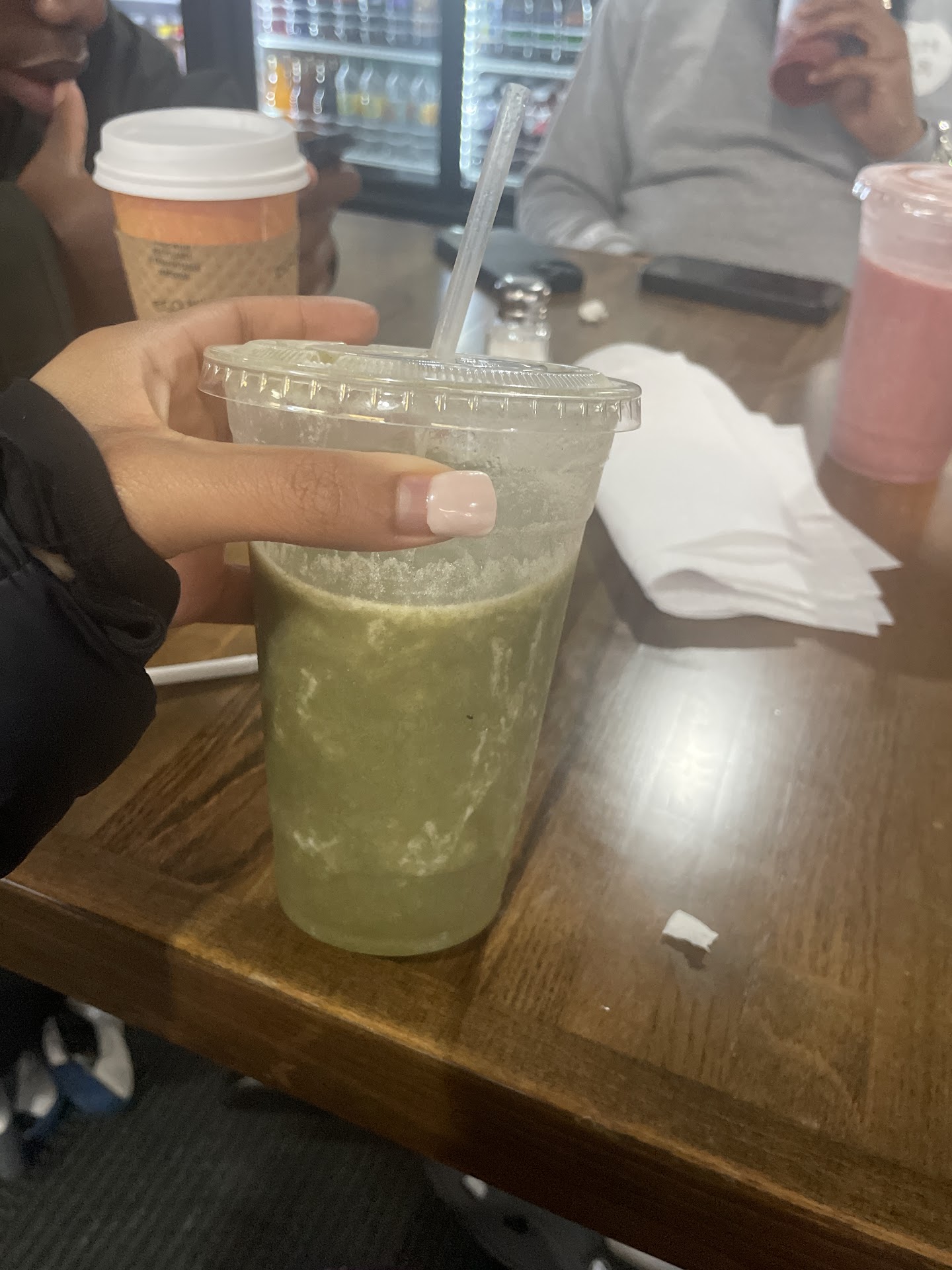 Read morethe service was very well; however i feel as though my smoothie was rushed. it gave something that i could make a home. the bathroom was not kept tidy and the “soap” bottle was literally filled with water. the seating is very crowded to the point where the person behind me seat is constantly...