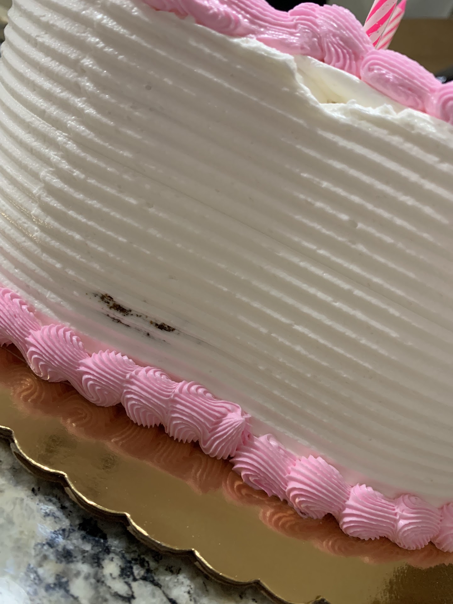 The worst part--I also bought a co-worker a whipped cream birthday cake (again behind glass looked okay) but I was so embarrassed when my coworkers cut into it. The whipped cream cake must have sat there for days because it was cracking at the base and it felt and tasted like dry rubber! This is not an exaggeration--most just dumped their piece after a few bites. Granted, the cakes do look good but they are not fresh or tasty as they appear!