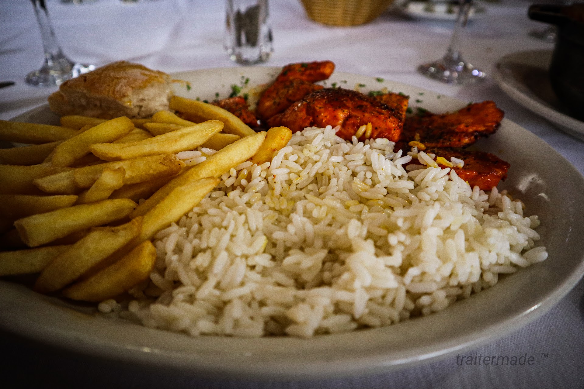 So delicious Portuguese food! We ordered steak and salad. Fresh bread with butter on the side and a beautiful table setup welcomed us, along with fresh, real flowers. We ordered calamari as an appetizer, and while I didn't think I would eat much, all those smells made me so hungry right at the start! Although we only had water, they have sparkling water, tea, espresso, wine, and many other drinks to accompany your meal. Our steak came on a hot stone rack. (tip: call ahead if you order a hot rack because the stone takes about 25 minutes to heat prior to your meal. We did and it worked out perfectly!) The steak is raw and you can add fresh garlic, rock salt, and lemon to the steak as it cooks, slice it as you prefer until desired temperature and eat right away. The salad was delicious too, raw onions and olives with the pit (Portuguese style you can't taste anywhere else) to accompany the typical house salad toppings and olive oil and red wine vinegar dressing, and white rice like no other I've tasted (and I eat lots of rice, as Japanese and Asian cuisine are my favorite and good for the skin). To split between 2, you'll both feel full and have leftovers! Finished off with a orange pekoe black hot tea. Can't wait to come back and eat...