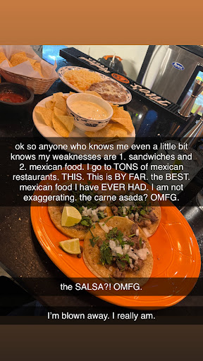 The Food: We started with complimentary chips and salsa that were absolutely delicious - such a nice touch. The loaded fries (I wish I could remember the exact name!) were incredible and ended up being my favorite part of the meal. The portions are seriously generous - by the time my asada street quesadillas arrived, I was already getting full from the appetizer. Even my husband, who helped me with the fries, tapped out before I did!