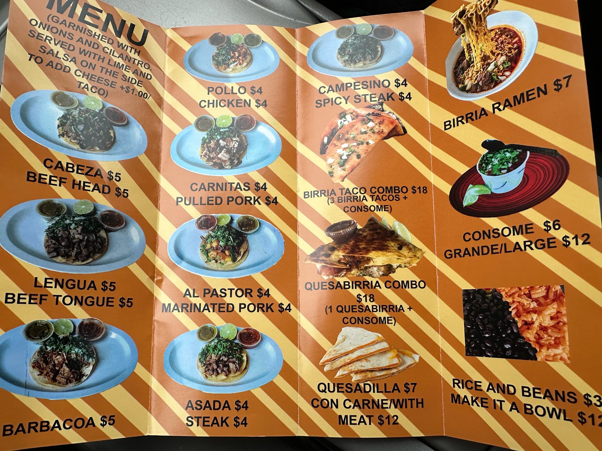 Read moreFor a truck, this place kicks butt. The food was really good. Quesabirria was a little pricey at $18, but just as good as any I've had in the past. Friendly, seating, good food. Most of the menu is well priced. Only downside is that the area of Bridgeton is a little rough for a family. They post up in a nice open area though so it's not a...