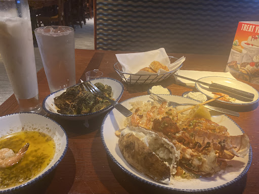 This will be a long review. But the moral of the story (for those who don't care to read our experience of this is establishment) is DO YOURSELF A FAVOR and drive 15 minutes to the red Lobster in Chesterfield. This was one of the worst experiences I've ever had at a Red Lobster. It was SO dirty in there I almost left as soon as I was seated. There was a 30 minute wait, with 50 percent of the tables empty ( and filthy ). We sat down and our waitress, Jackie, came by after 5 minutes and let us know she would be with us shortly. She had 3 tables including ours and was closing one of them out. The people at that table were audibly upset about something- they left and she walked back to the kitchen after rolling her eyes at me ( visibly annoying at the upset customers). I thought maybe she needed a minute to compose herself after that interaction. 15 minutes later and she FINALLY takes our drink order. At this point her (one) other table is eating. It still took 10 minutes to get our (two) drinks. All the while I'm just staring at the filth around me.