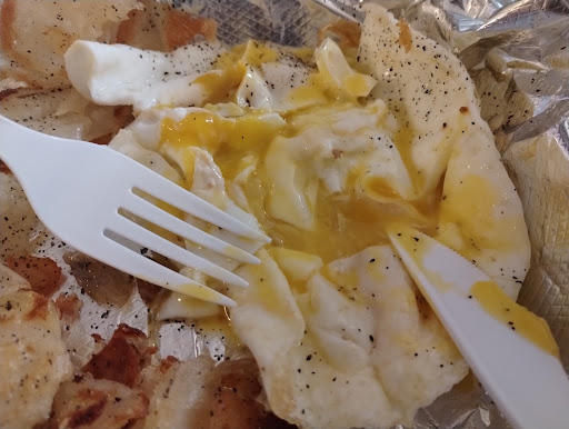 Begin to eat, my girls pancakes and waffles were fine. I got an omelette though (if you follow me you know I'm gonna get the omelette almost everytime) so I went with the usual spinach, mushroom and cheese add some bacon. #1 canned mushrooms, gross and why?? So much sodium for one, not fresh at all, would of rather known that previous to ordering. #2 spinach is def not fresh either. Frozen I would imagine and if not canned. Again wish id of known. I ate it of course, but better quality in that department would make for better food.