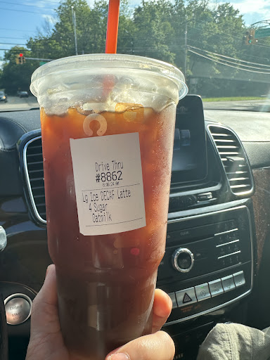 Read moreLong drive thru line at 8am on a weekday, maybe about 10-12 min wait. When I picked up my order- iced latte with oat milk, it looked like a black coffee. When asked if he put any oat milk in it the man at the window said yes, it is dark, not light (as in the oat milk)-?! I told him I ordered a latte, and he said it was, it’s just dark, not white. Huh?? I didn’t have time to wait further. He clearly doesn’t know what oat milk (maybe any milks) look like, or what a latte is....