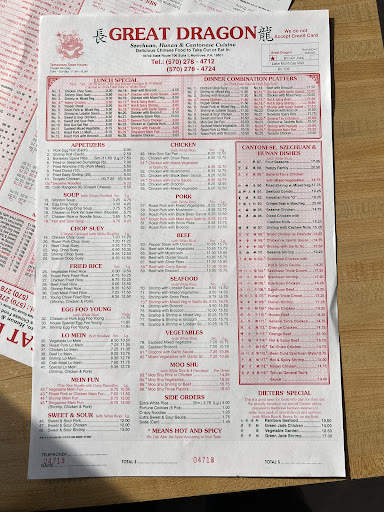 I haven't eaten out in a long time. But tonight my wife and I opted to get take out from Great Dragon. My dish was Shrimp with Garlic Sauce and mixed vegetables. The worst tasting Chinese food dish I've ever had in my life. Zero flavor. The woman behind the counter had even made a point to tell my wife that my dish was, "very spicy." I repeat, ZERO FLAVOR. What they served was heated canned vegetables, minute rice, and the bottom of the barrel frozen shrimp. Folks, save your money. Don't stoop this low to fill your stomach. This is garbage. It's not really food. It's a food-like substance. If this place cared even a little about their business they'd serve the food with fresh veggies and upgrade to a decent frozen shrimp. It would be a hundred steps up from the garbage in my belly right now. I will never go...