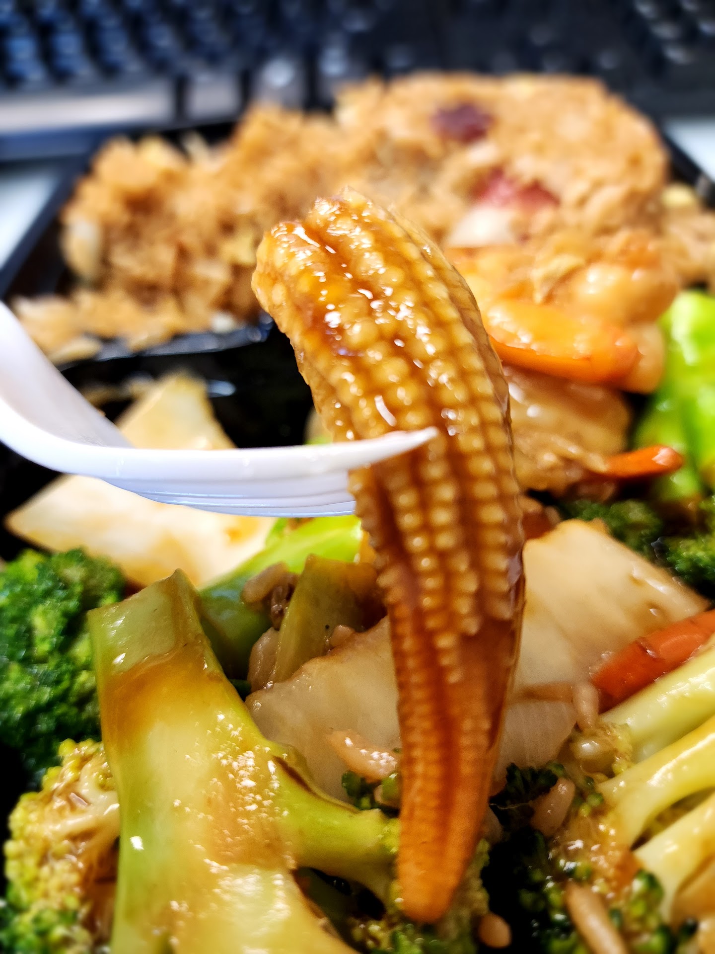 Opportunity: The Thai Shrimp fried rice was very mushy. We picked it up 5 mins after it came out so didn't sit too long. But still mushy. Reduce the Tomato pieces in that stir fry dish and fry the rice some more.. it'll be great. Trust me.