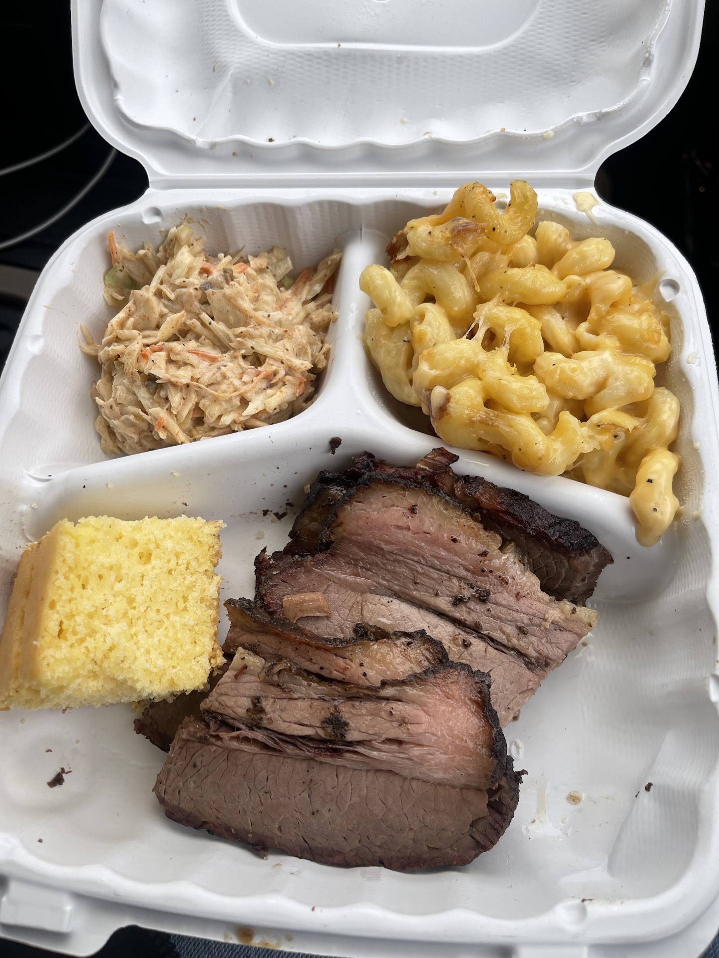 Original (July 2021): Our expectations were not large as we pulled up, but I’d put this little truck up against anyone in the Garden State! I had ribs, brisket, and burnt ends in a combo platter with homemade beans w/brisket, cornbread and fries. My wife had the pulled pork “Sammich” with cole slaw. We had their house sauce. The ribs were meaty, juicy, and fall-off-the-bone tender. The brisket was juicy and tender. The burnt ends were large and juicy. The sauce (and there are quite a few to choose from) was a little bit sweet, but not overly so - kind of like a Kansas City. Both of us liked it a lot. The portions were generous. The beans were very flavorful-a mix of a couple different beans, cooked with some of the brisket. The fries were double fried and crunchy. The cornbread was moist and good. The cole slaw was tasty. We bought a half rack of ribs (all they had left) and a pound of burnt ends to bring home....